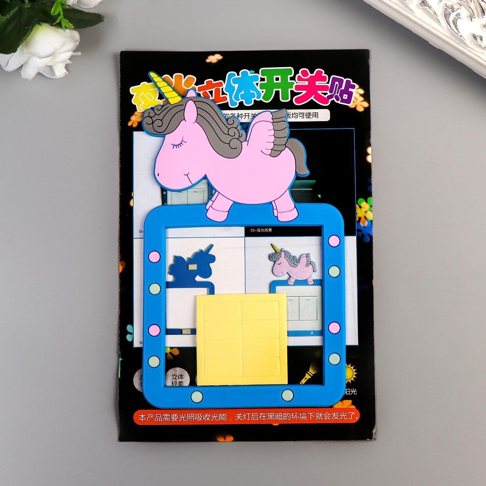 Наклейка на выключатель "Единорог" объемная, светится в темноте 8,6х8,6 см, 10,5х18 см