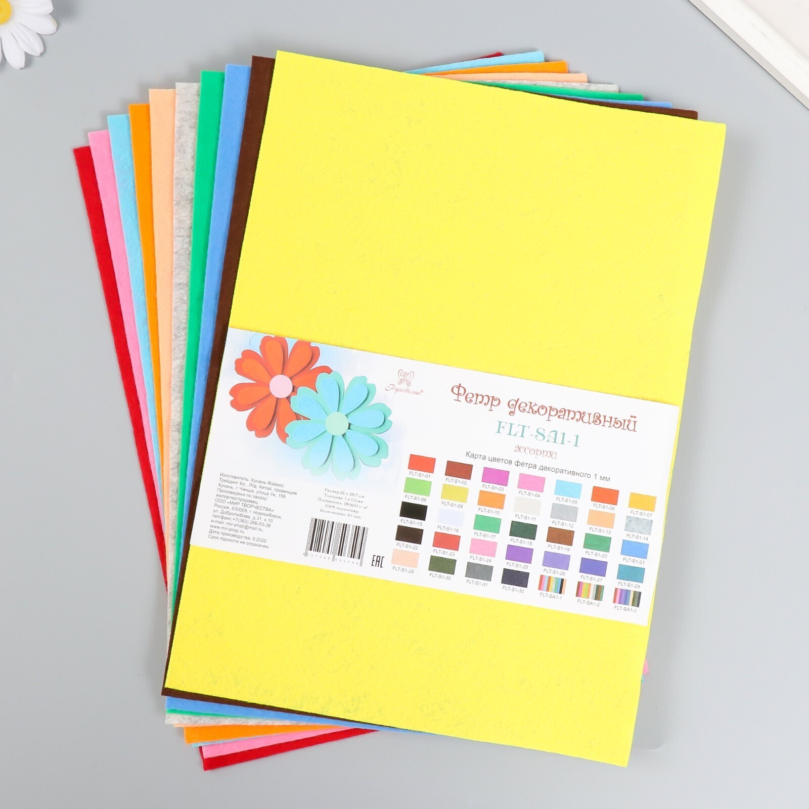 Набор декоративного фетра "Рукоделие" 21х29,7 см, 10 листов, 180 гр, 1 мм, ассорти №1
