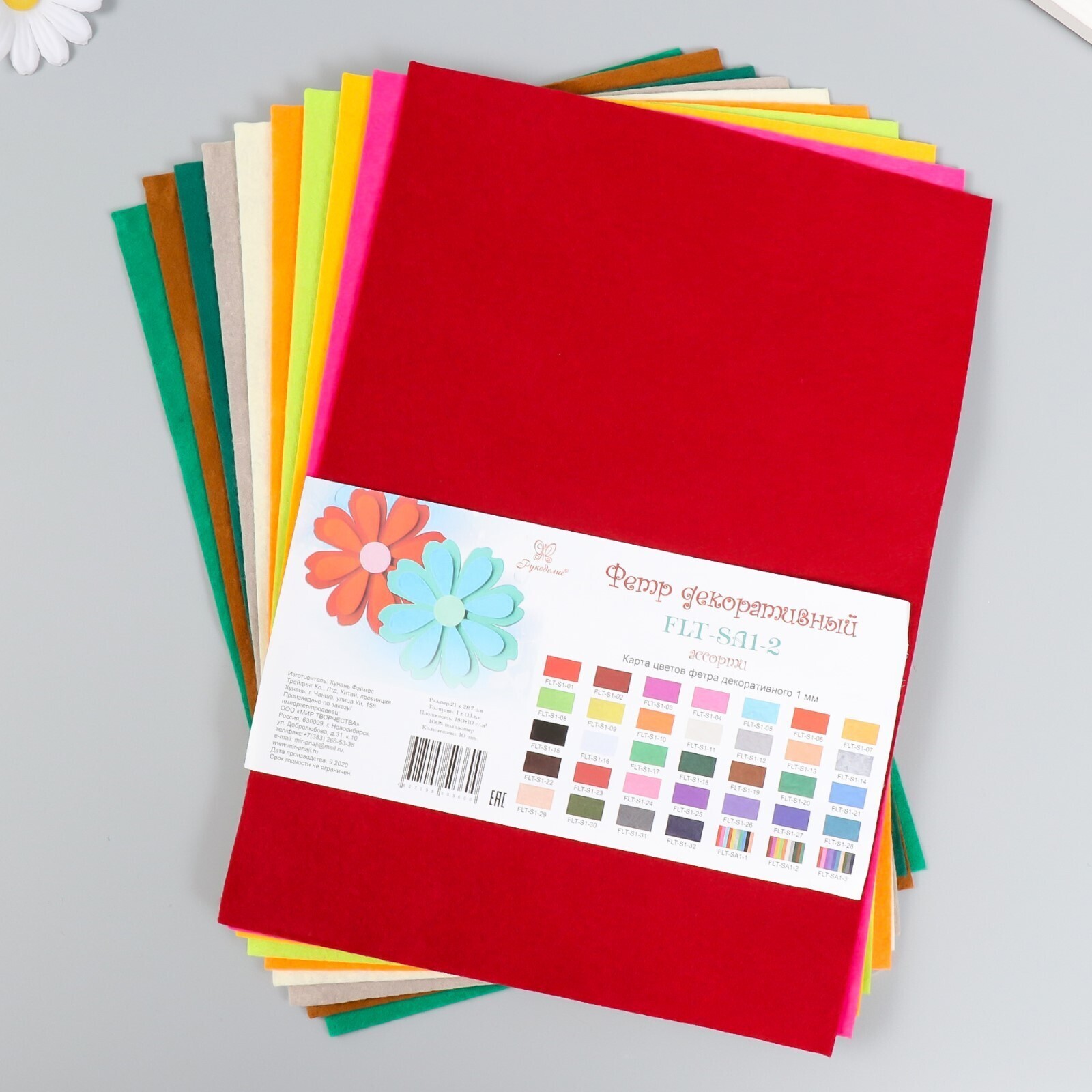 Набор декоративного фетра "Рукоделие" 21х29,7 см, 10 листов, 180 гр, 1 мм, ассорти №2