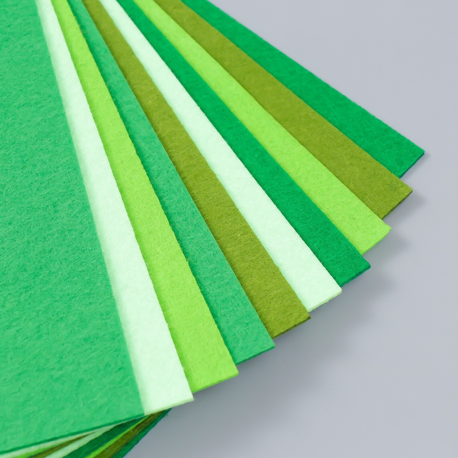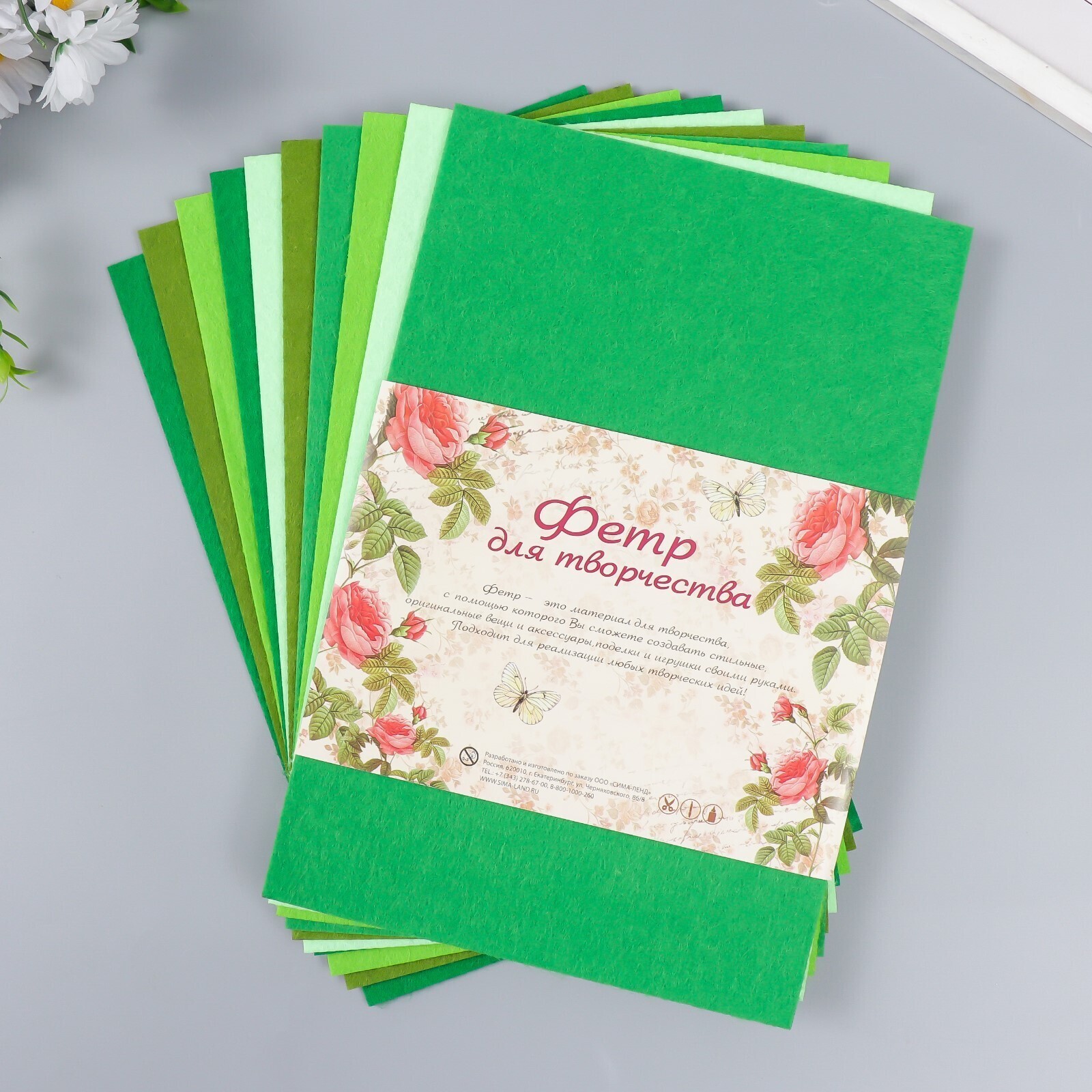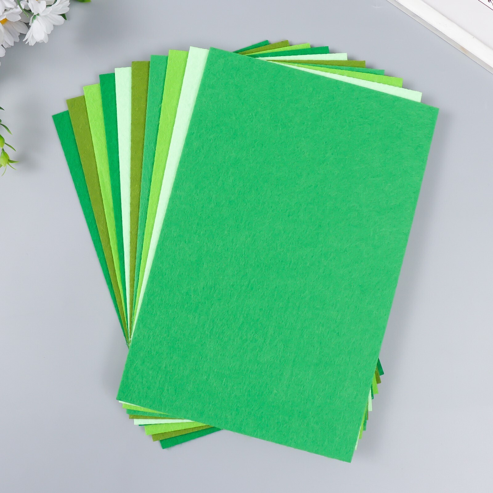 Фетр жесткий 2 мм "Палитра зелёного" набор 10 листов формат А4