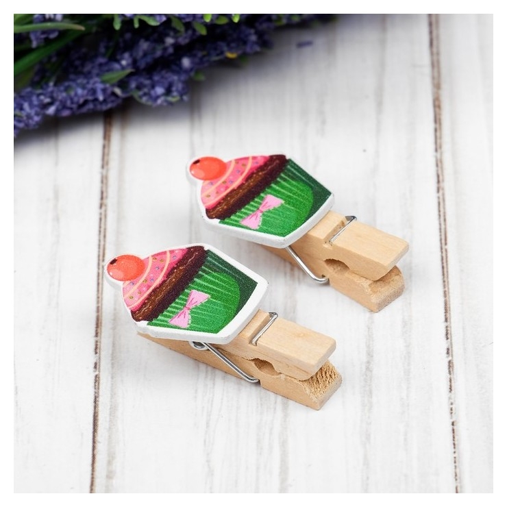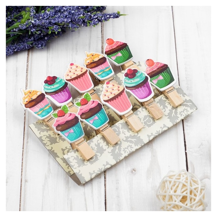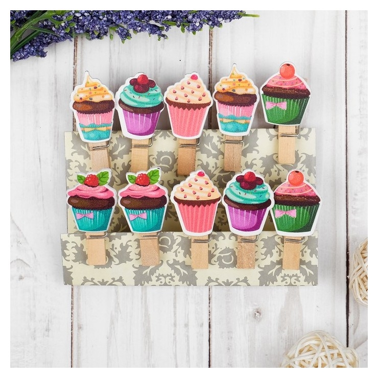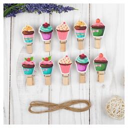 Прищепки декоративные с верёвкой для подвеса «Кейки» набор 10 шт.