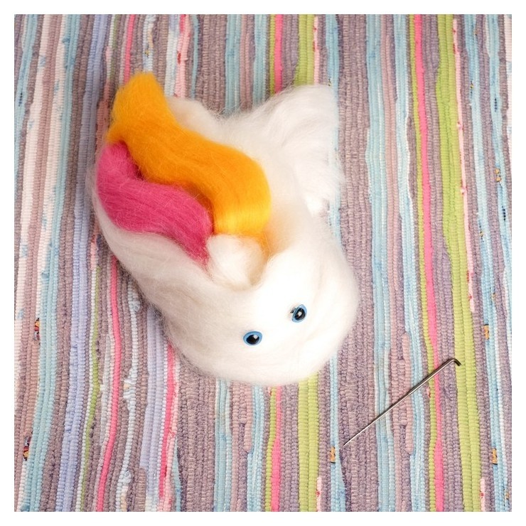 В этом наборе собрано всё самое необходимое для создания своими руками игрушки в технике сухого валяния. Раньше чтобы смастерить что-то подобное приходилось искать шерсть разных цветов в магазине, у бабушки, в маминых коробочках с пряжей, а теперь всё необходимое есть в комплекте для творчества. Теперь каждый, даже начинающий любитель фелтинга, быстро смастерит красивую игрушку.