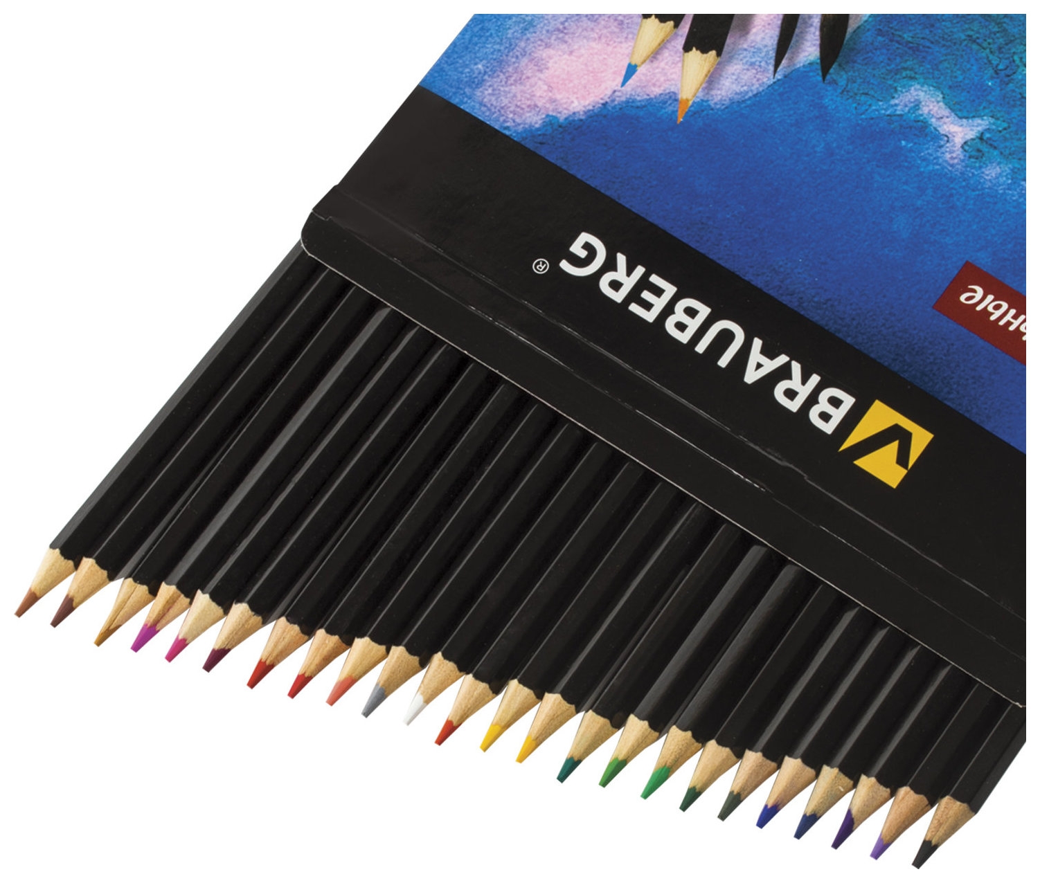 Акварельные карандаши BRAUBERG "Artist line" совмещают в себе свойства цветного карандаша и акварельных красок. Высокое качество грифеля с абсолютной чистотой палитры гарантирует равномерную насыщенность цвета по всей поверхности и легкую растворимость в воде.