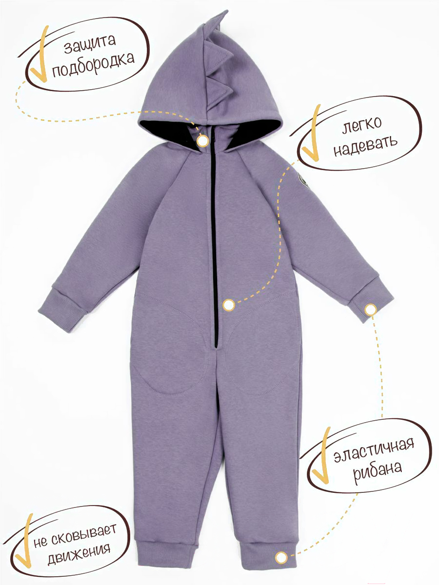 Комбинезон для малышей Amarobaby Dino / AB-OD22-DINO502/17-98 (сиреневый, р. 98-104)