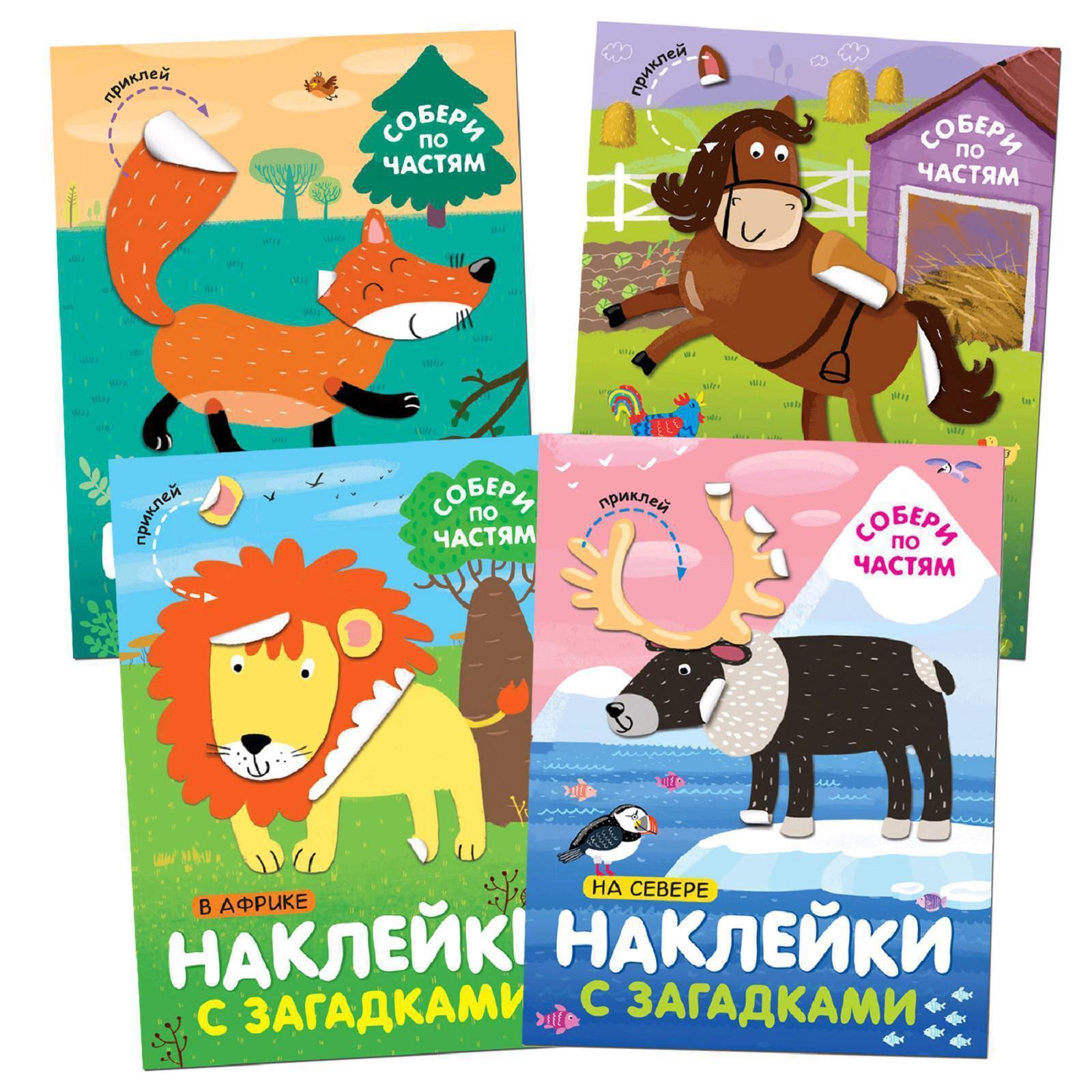 Наклейки с загадками. Собери по частям. Набор из 4 книг.