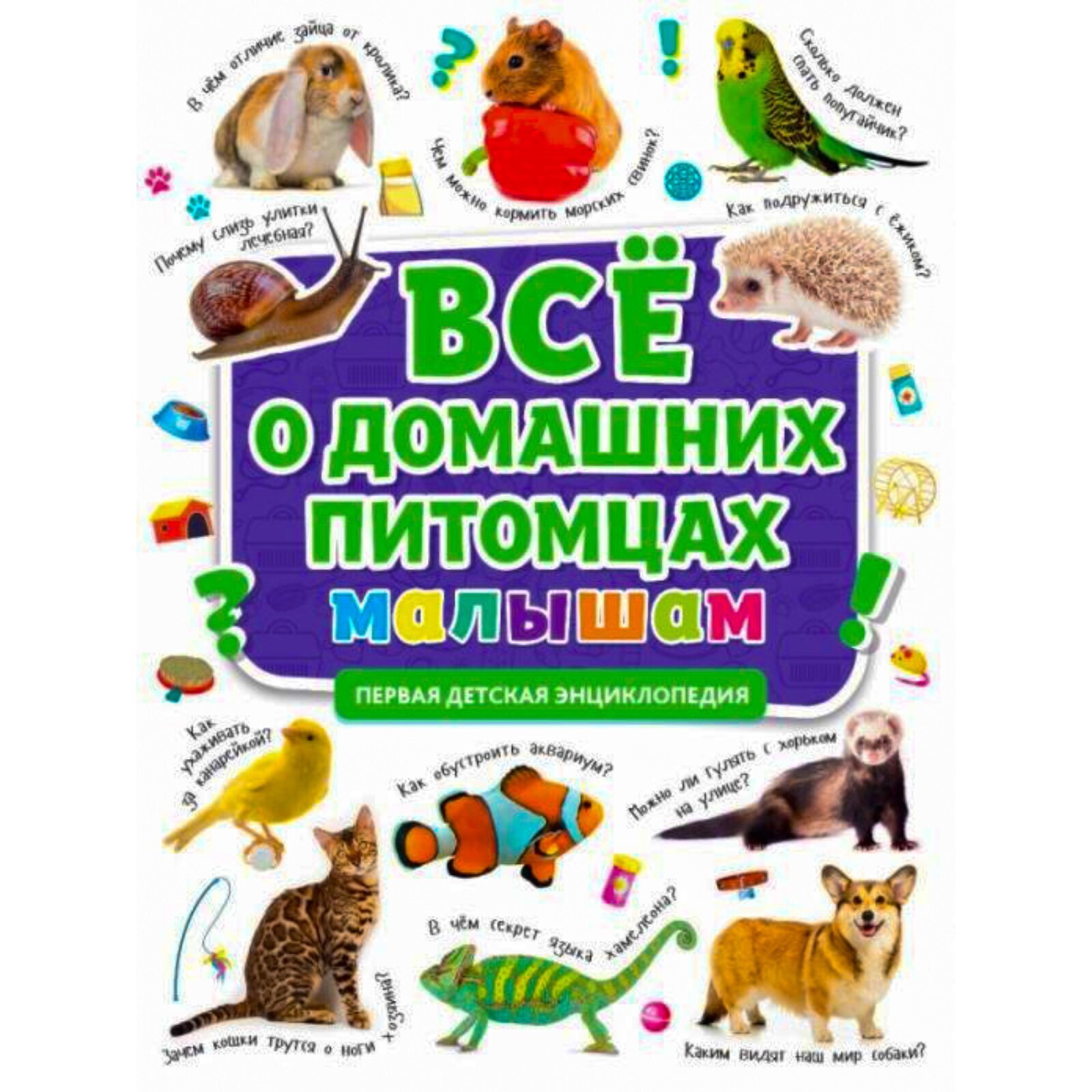Перед вами яркая, увлекательная, познавательная книга. Раскрыв её, малыш познакомится с различными видами домашних питомцев, узнает, как правильно за ними ухаживать, чтобы сделать их жизнь максимально комфортной и безопасной. Энциклопедия ответит на множество вопросов, волнующих каждого ребёнка: зачем кошки трутся о ноги хозяина, каким видят наш мир собаки, в чём секрет языка хамелеона, для чего игуанам такие длинные когти, почему слизь улитки лечебная и многие другие.
