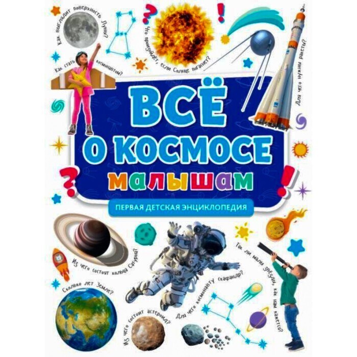 А ещё энциклопедия ответит на множество вопросов, волнующих каждого ребёнка: почему происходят солнечные затмения, что такое атмосфера, сколько длятся сутки на Луне, откуда у кометы хвост, как происходит подготовка будущих космонавтов, что такое невесомость, откуда берётся мусор в космосе и многие другие.