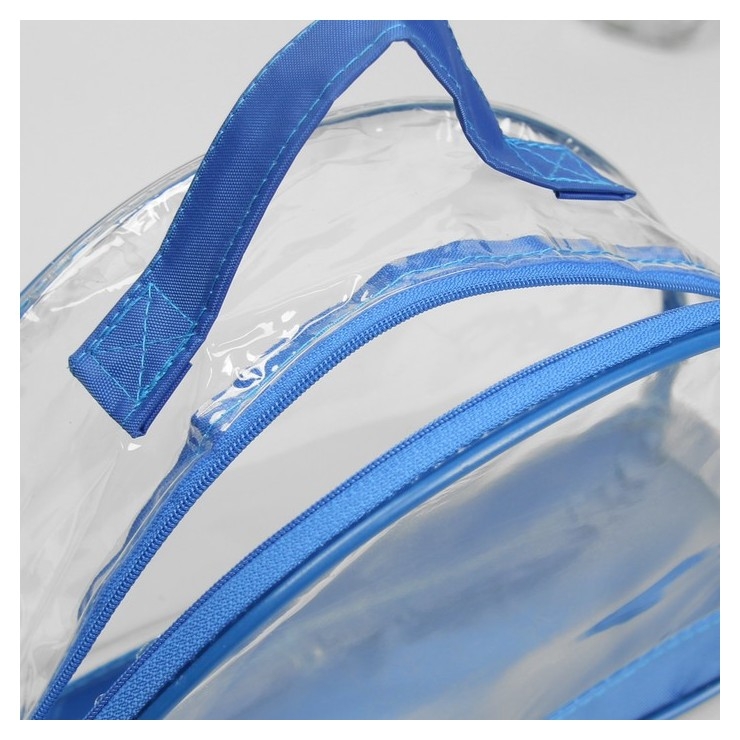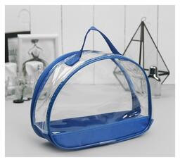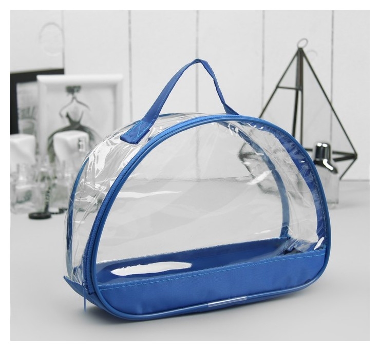 Косметичка из ПВХ, отдел на молнии, с ручкой, прозрачная Цвет голубой