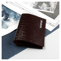 Обложка для паспорта, тиснение, крокодил, цвет коричневый