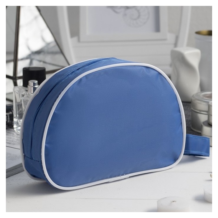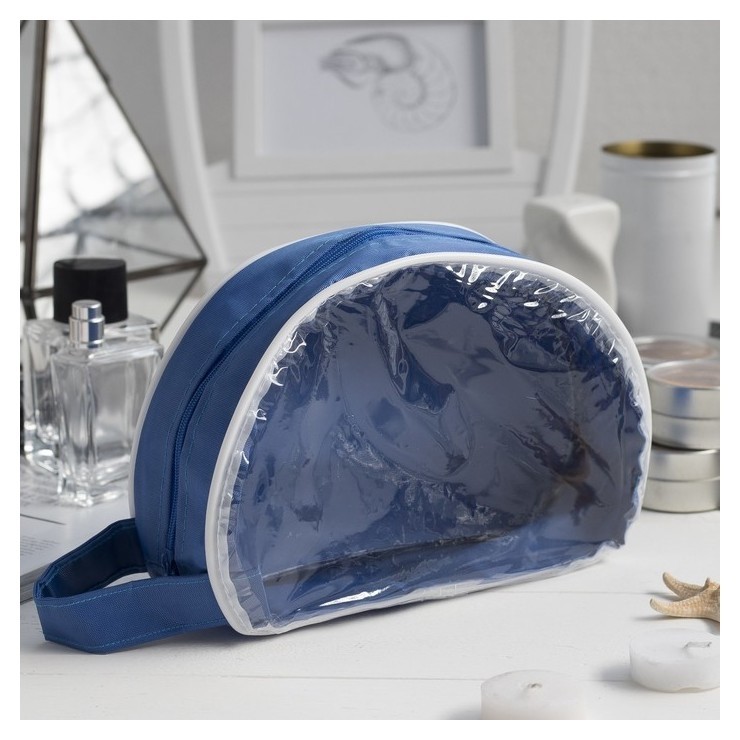 Косметичка полукруг, отдел на молнии, с ручкой, цвет синий