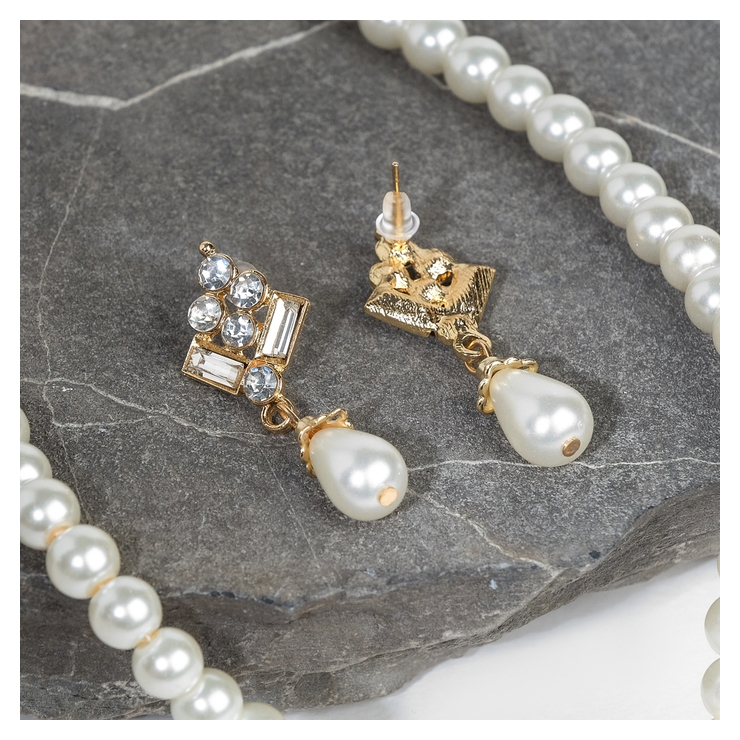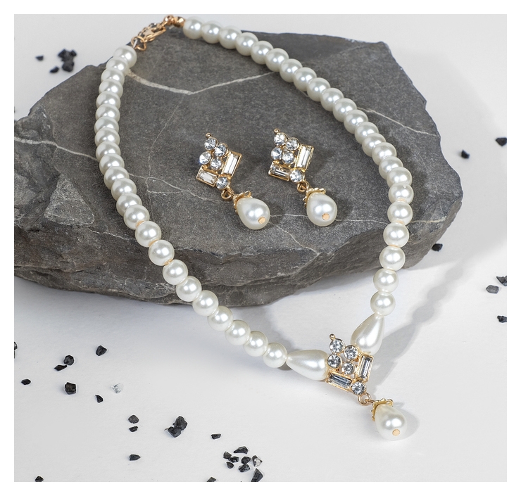 Набор 2 предмета: серьги, колье "Антуанетта" гранж, цвет белый в золоте