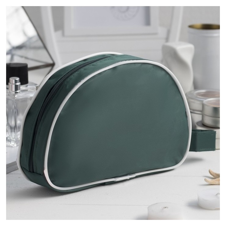 Косметичка пвх на молнии, с ручкой, цвет зелёный