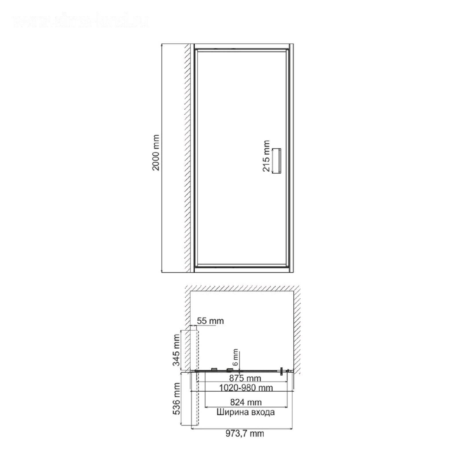 Душевая дверь WasserKRAFT 27I12, 1000 х 2000 мм, распашная, прозрачная