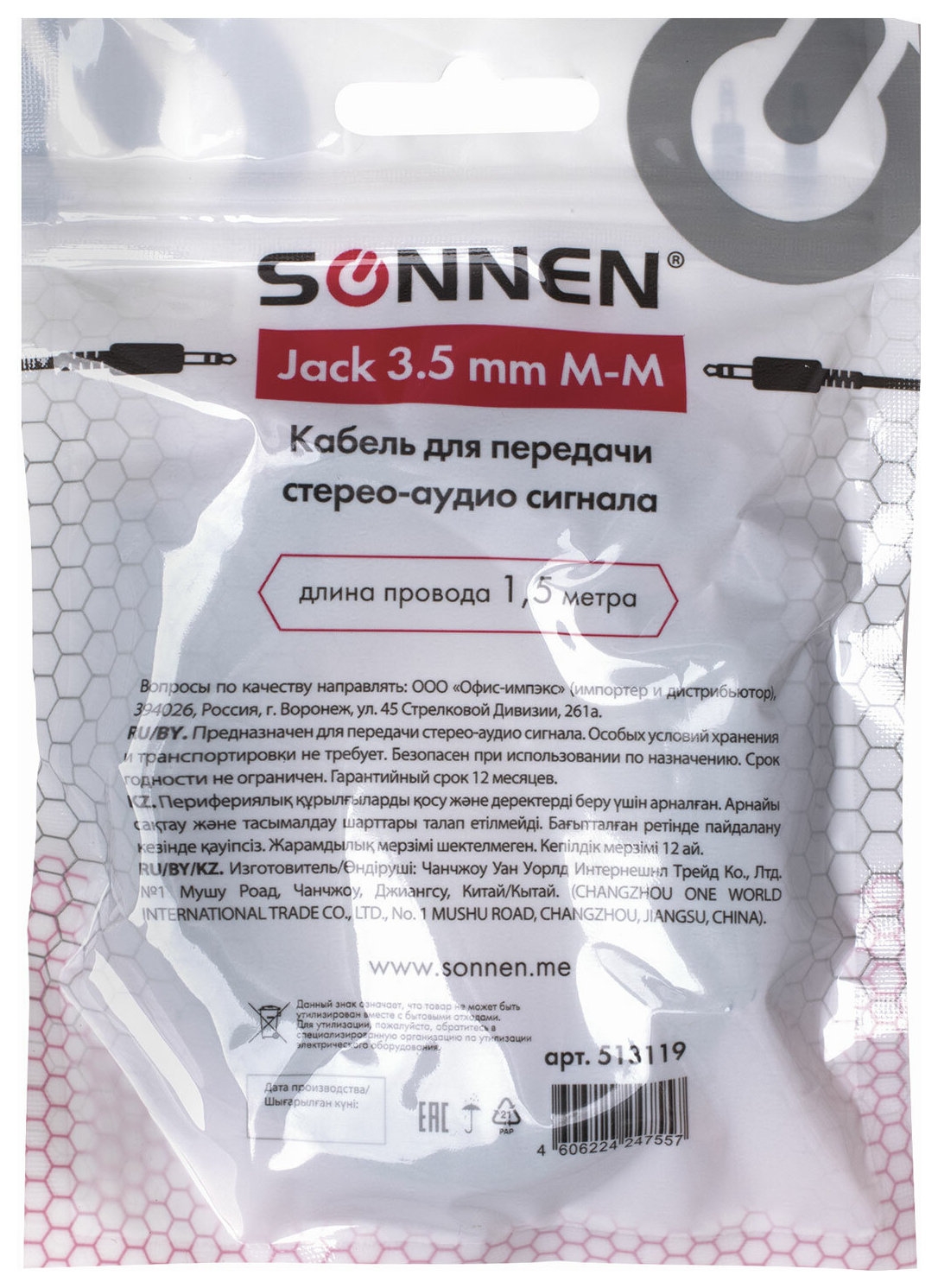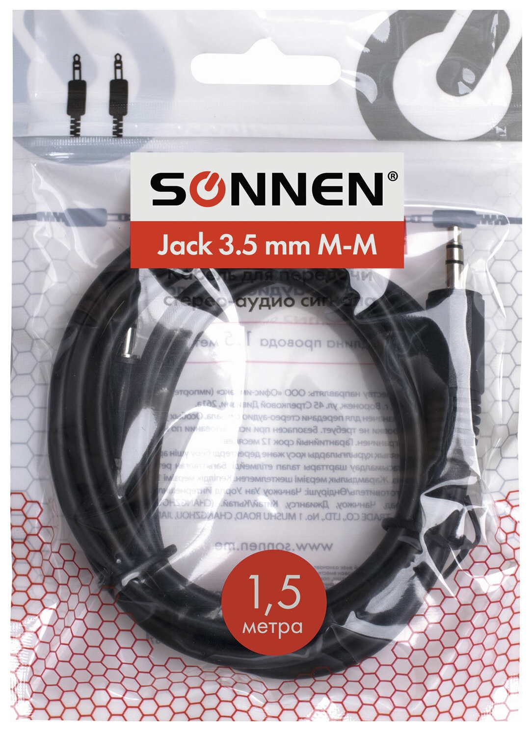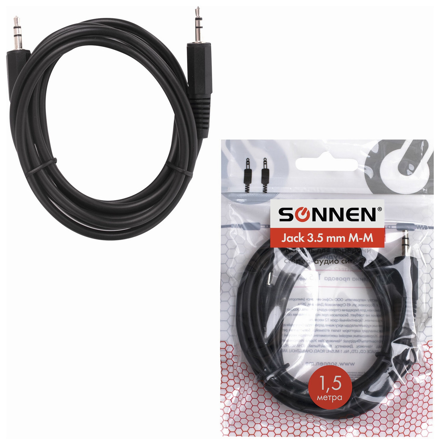 Кабель аудио AUX Sonnen, Jack 3.5 мм(M)-jack 3.5 мм(m), 1.5 м, черный