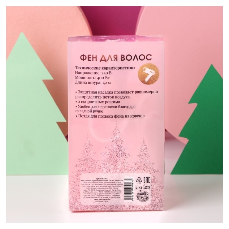 Фен для волос "Чудесной тебе", модель Lge-001, 12,5 х 17 см