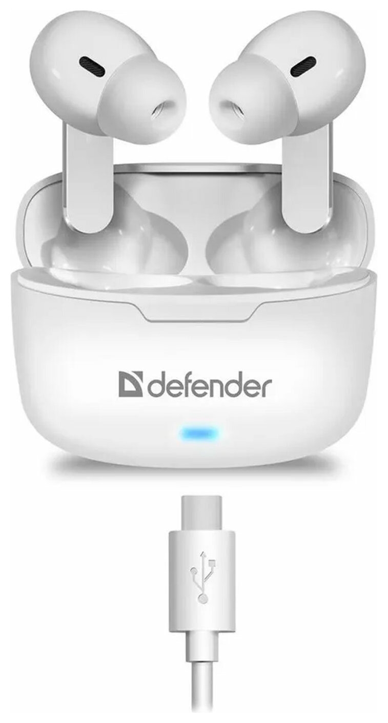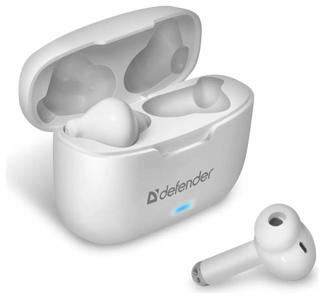 Наушники с микрофоном (Гарнитура) Defender Twins 903, Bluetooth, беспроводные, белые, 63903