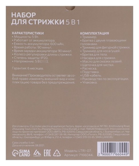 Набор для стрижки LuazON LTRI-07 предназначен для домашнего использования. Машинка для стрижки эргономична и практична в использовании. Небольшие размеры, лёгкий вес – всё это подчеркивает компактность машинки.