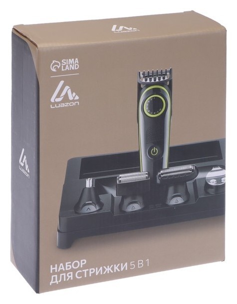 Набор для стрижки Luazon Ltri-07, 5 в 1, 5 Вт, 5 насадок, триммер, от акб, чёрный