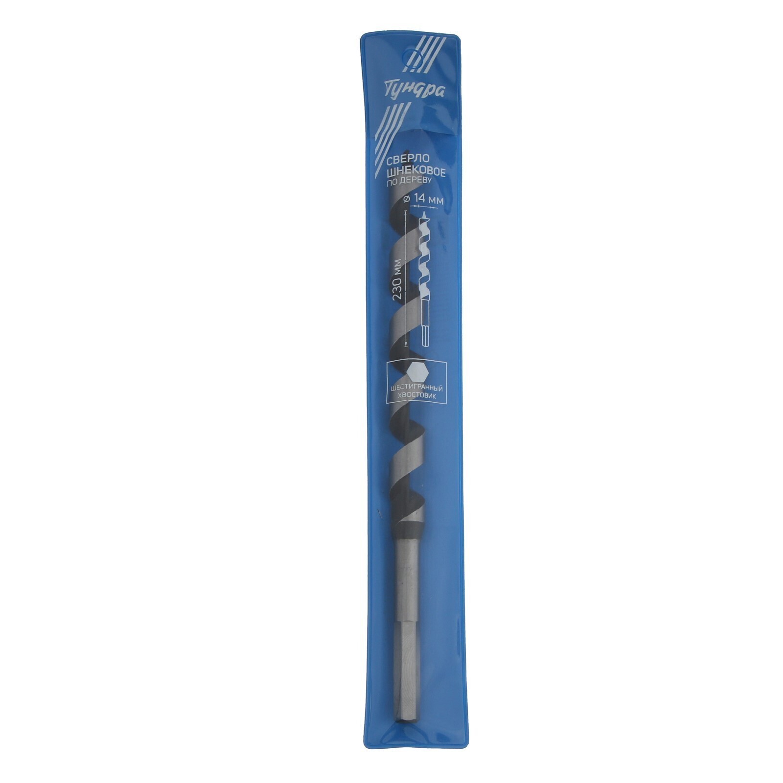 Сверло по дереву шнековое ТУНДРА, шестигранный хвостовик, 14 х 230 мм