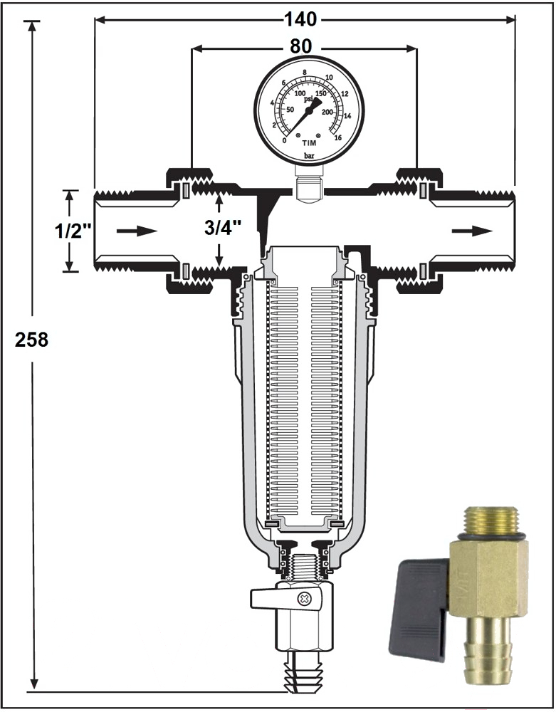 Магистральный фильтр Tim JH-1001 1/2 (с манометром)