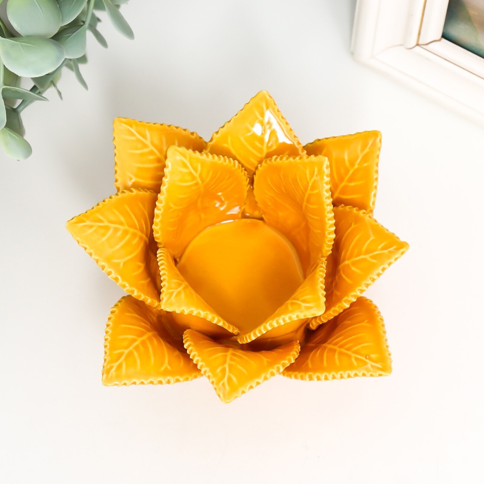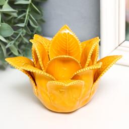 Подсвечник керамика на 1 свечу "Листья розы" d-4,2 см жёлтый 13х13х9 см