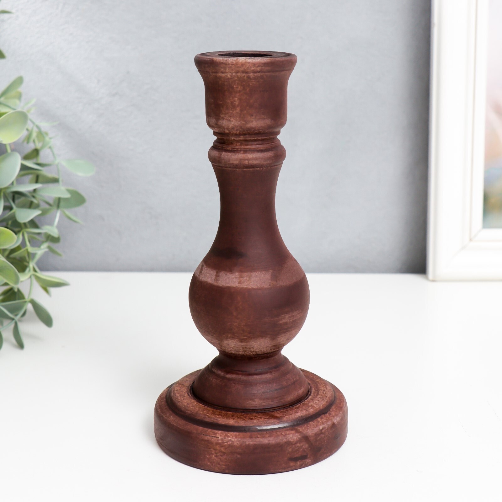 Подсвечник дерево "Моранди" тёмно-коричневый 16,5х8,5х8,5 см