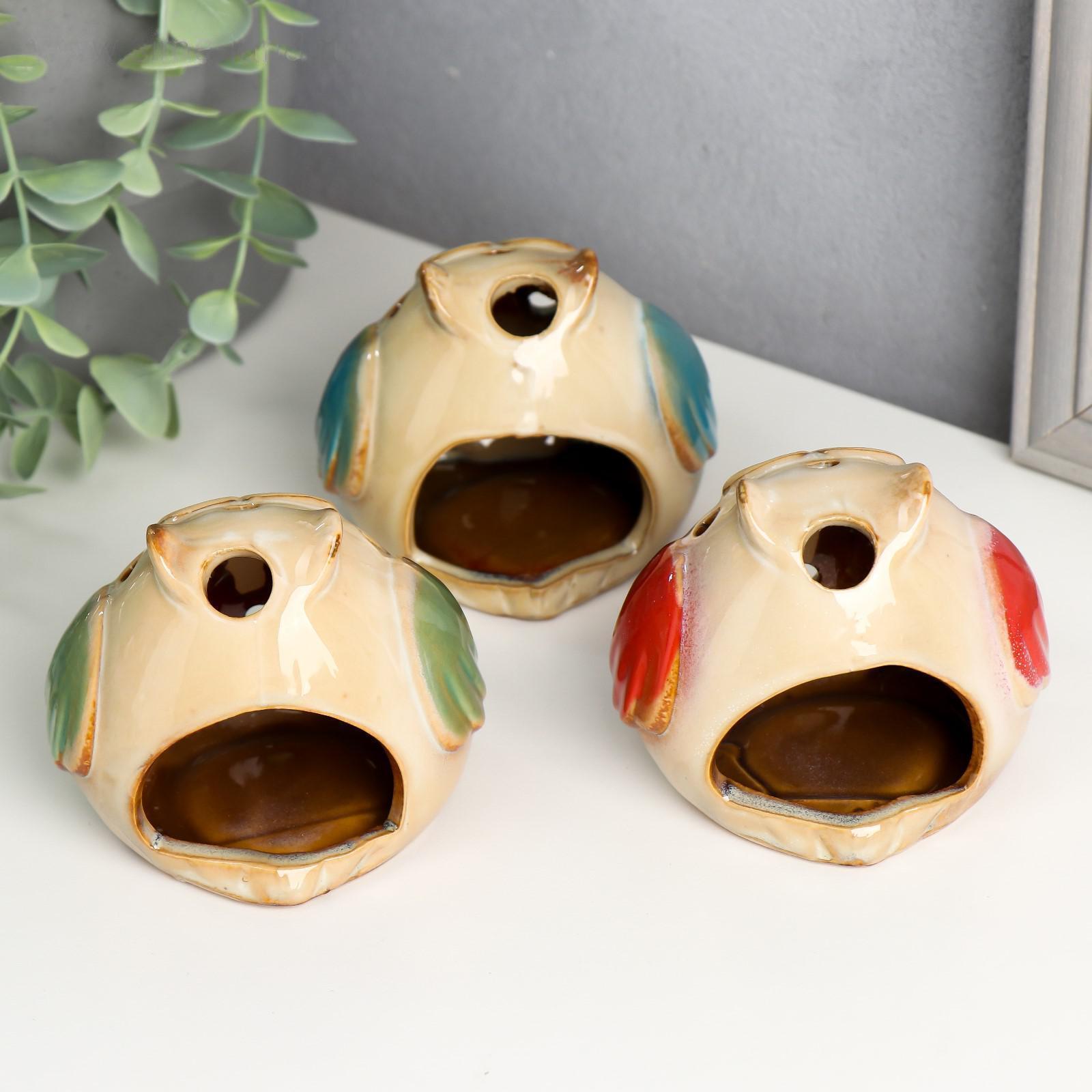 Подсвечник керамика "Филин-пузатик" набор 3 шт 7,7х7,7х6,8 см