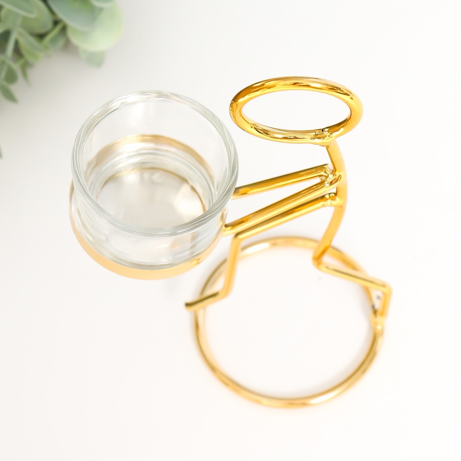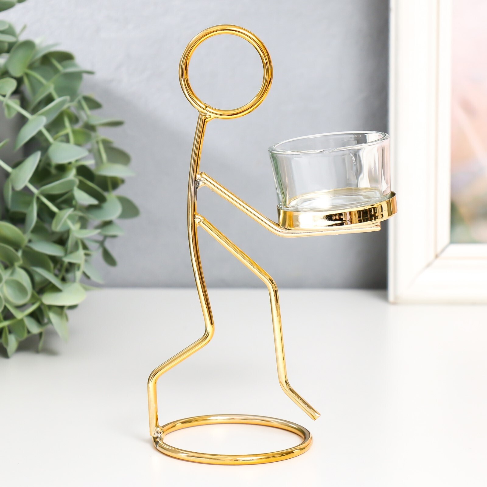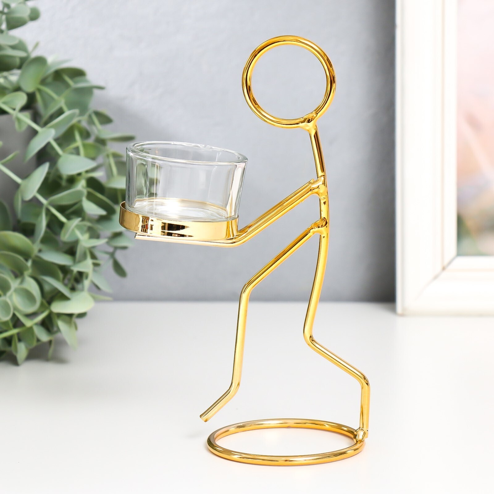 Подсвечник металл, стекло на 1 свечу "Человечек" d-4,5 см золото 7,5х7,5х18,5 см