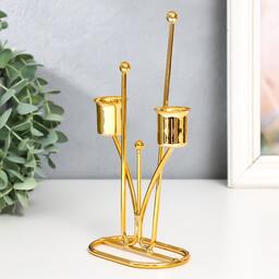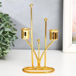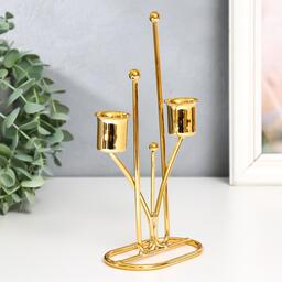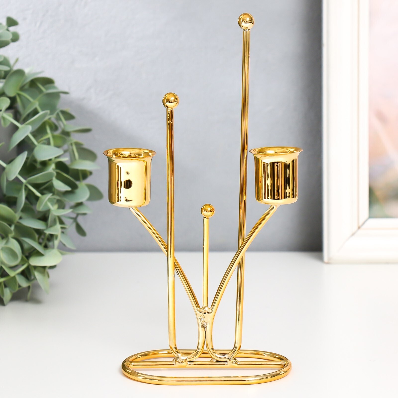 Подсвечник металл на 2 свечи "Прямые линии. Шарики" d-2-2,3 см золото 10х6,5х20,5 см
