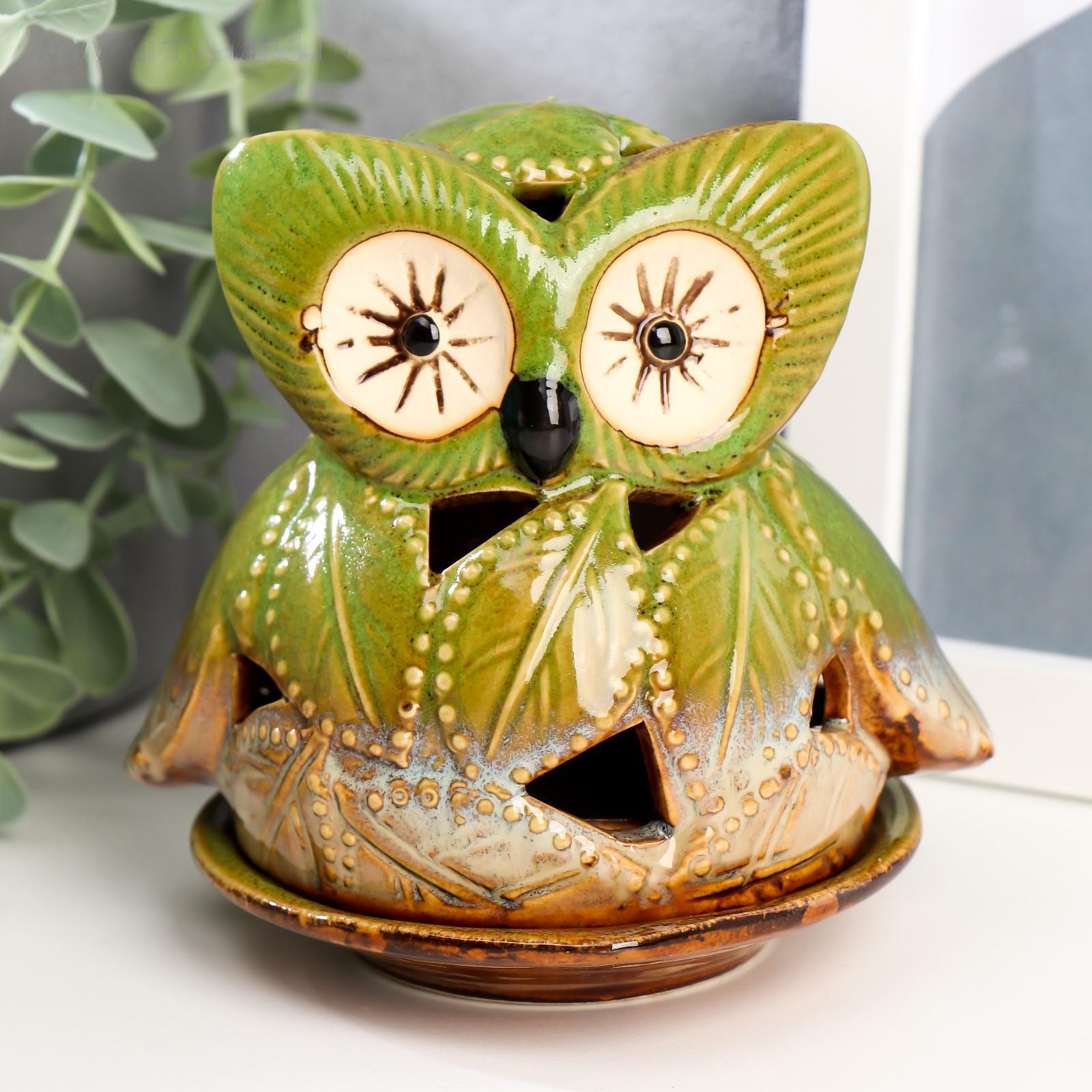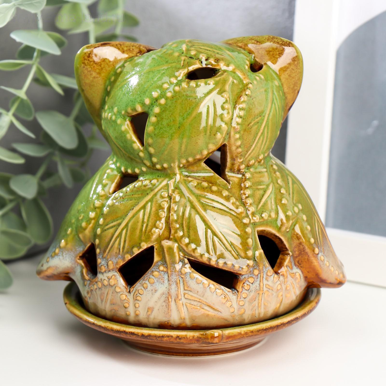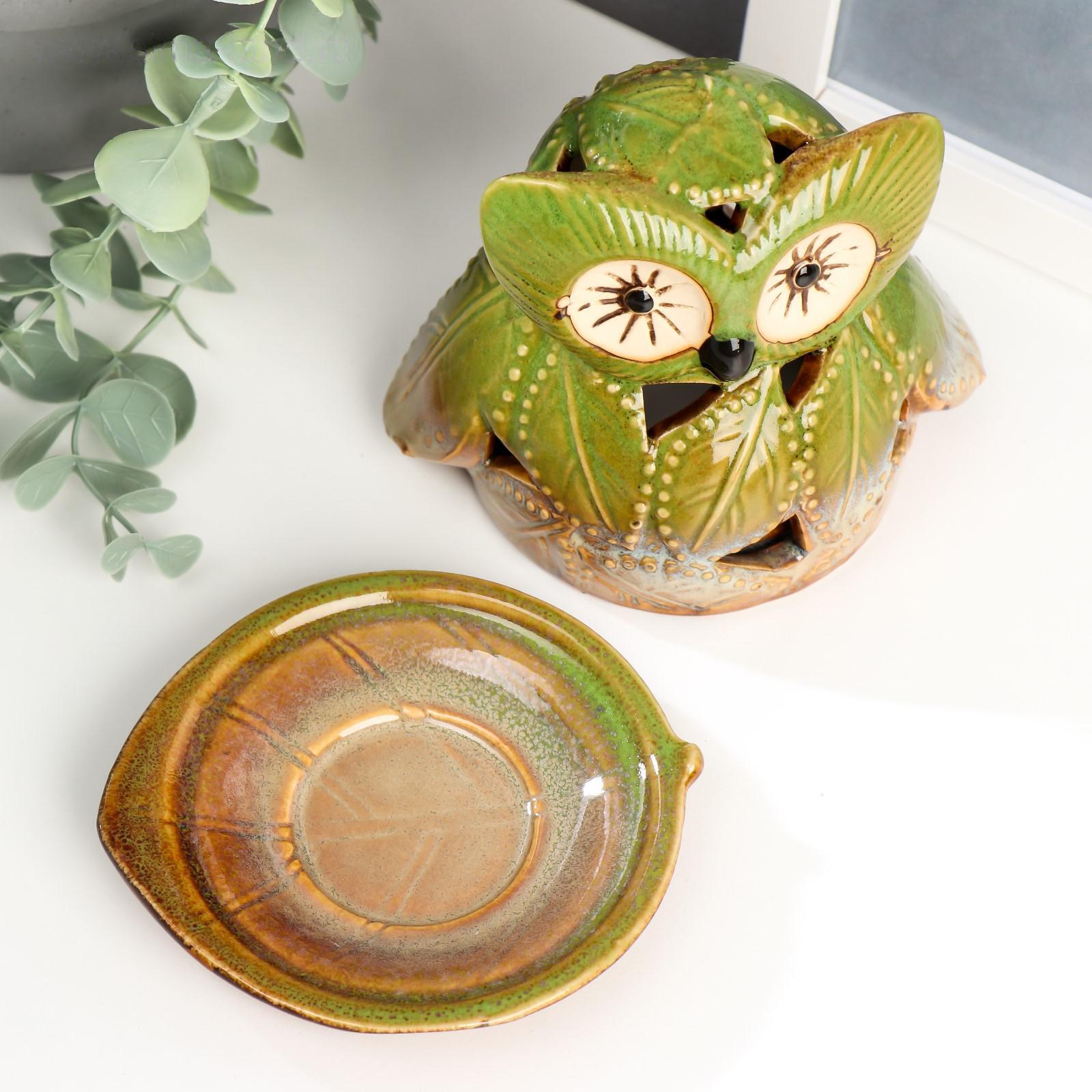 Подсвечник керамика "Филин из листьев" 11х11,5х9,5 см