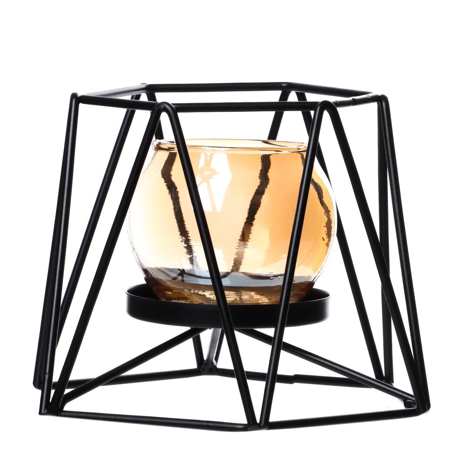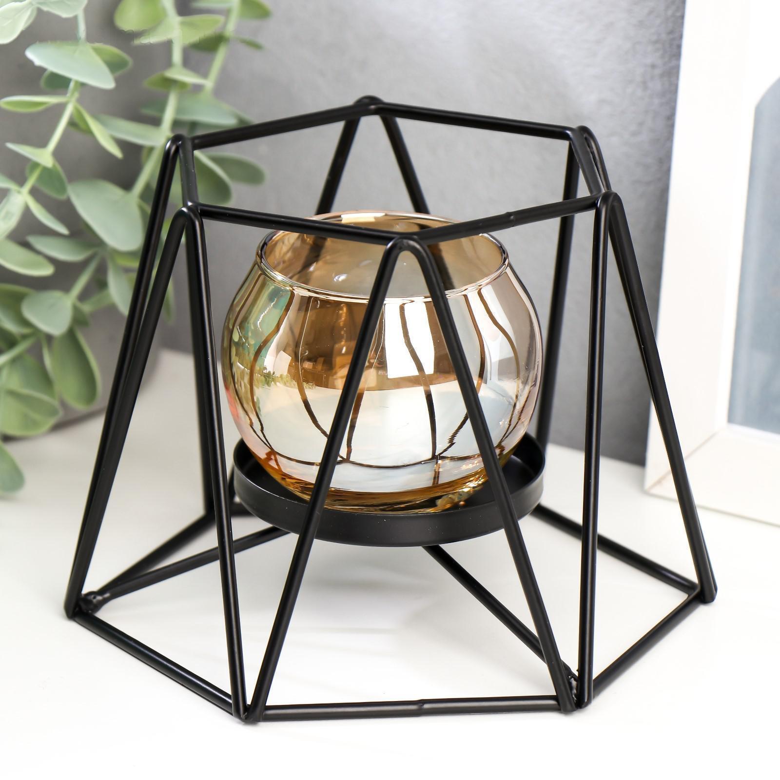 Подсвечник металл, стекло на 1 свечу "Чёрные треугольники" 10х13,5х13,5 см