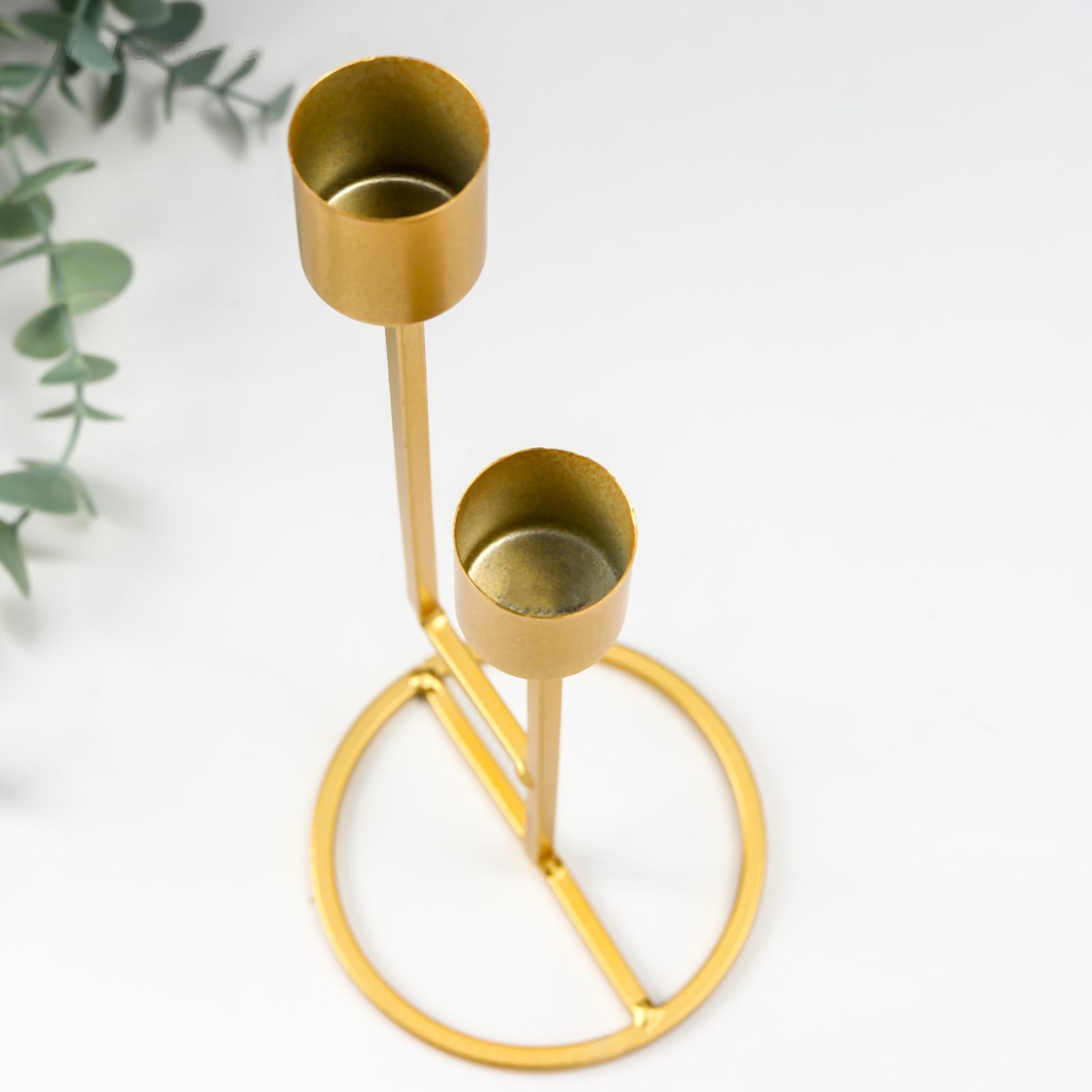 Подсвечник металл на 2 свечи "Высота" золото 23,5х9,5х9,5 см