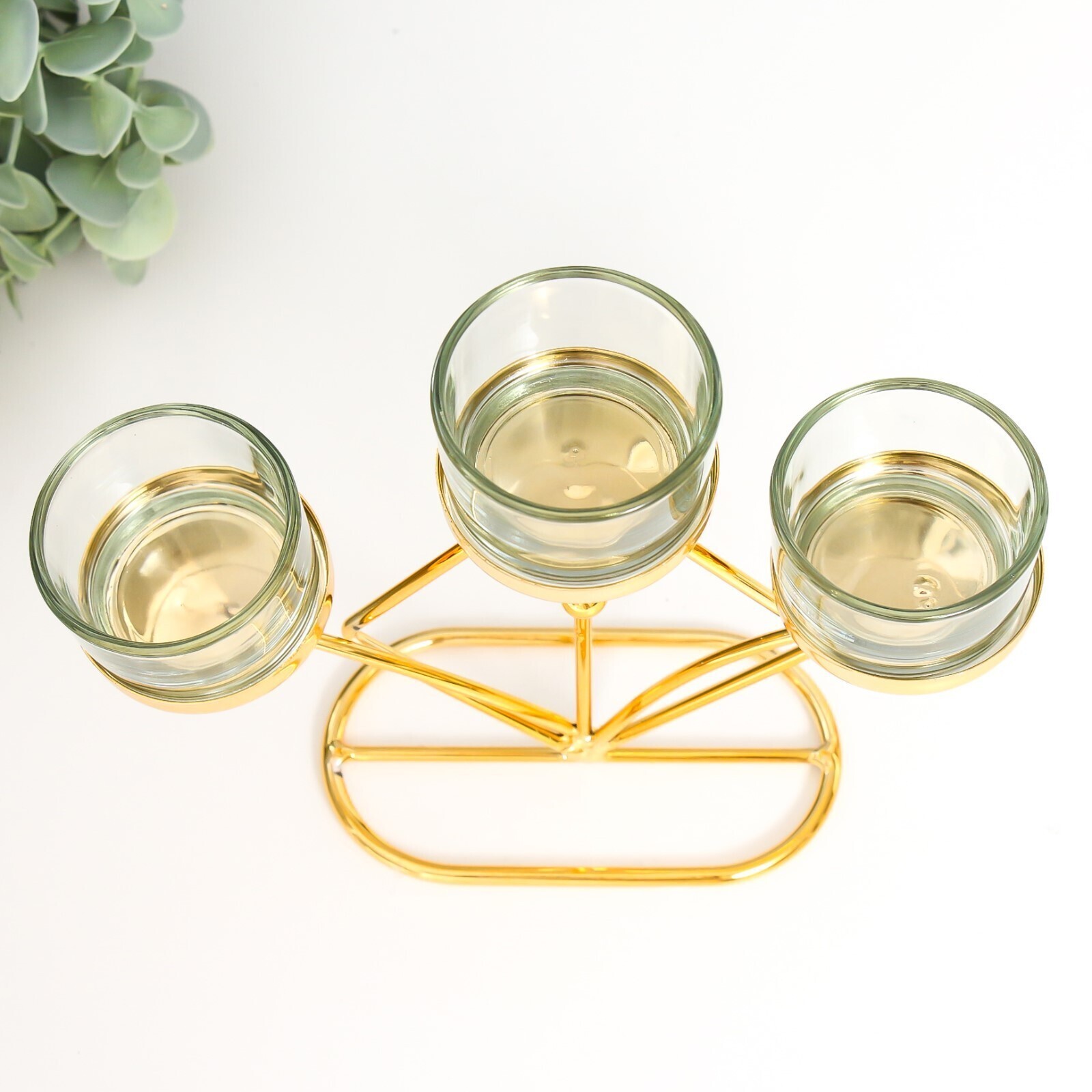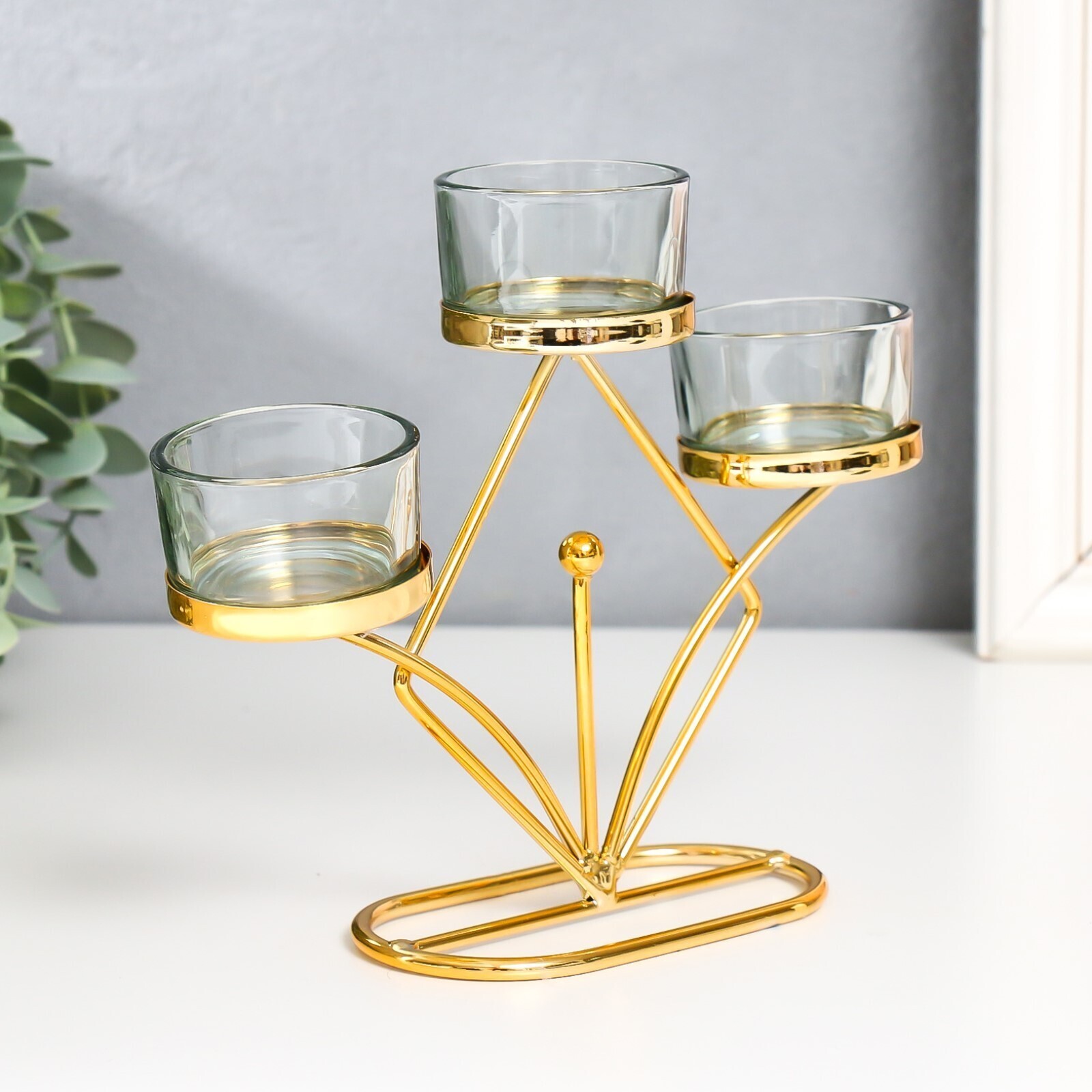 Подсвечник металл, стекло на 3 свечи "Ромб. Шарики" d-4,5 см золото 18,5х5х15,5 см