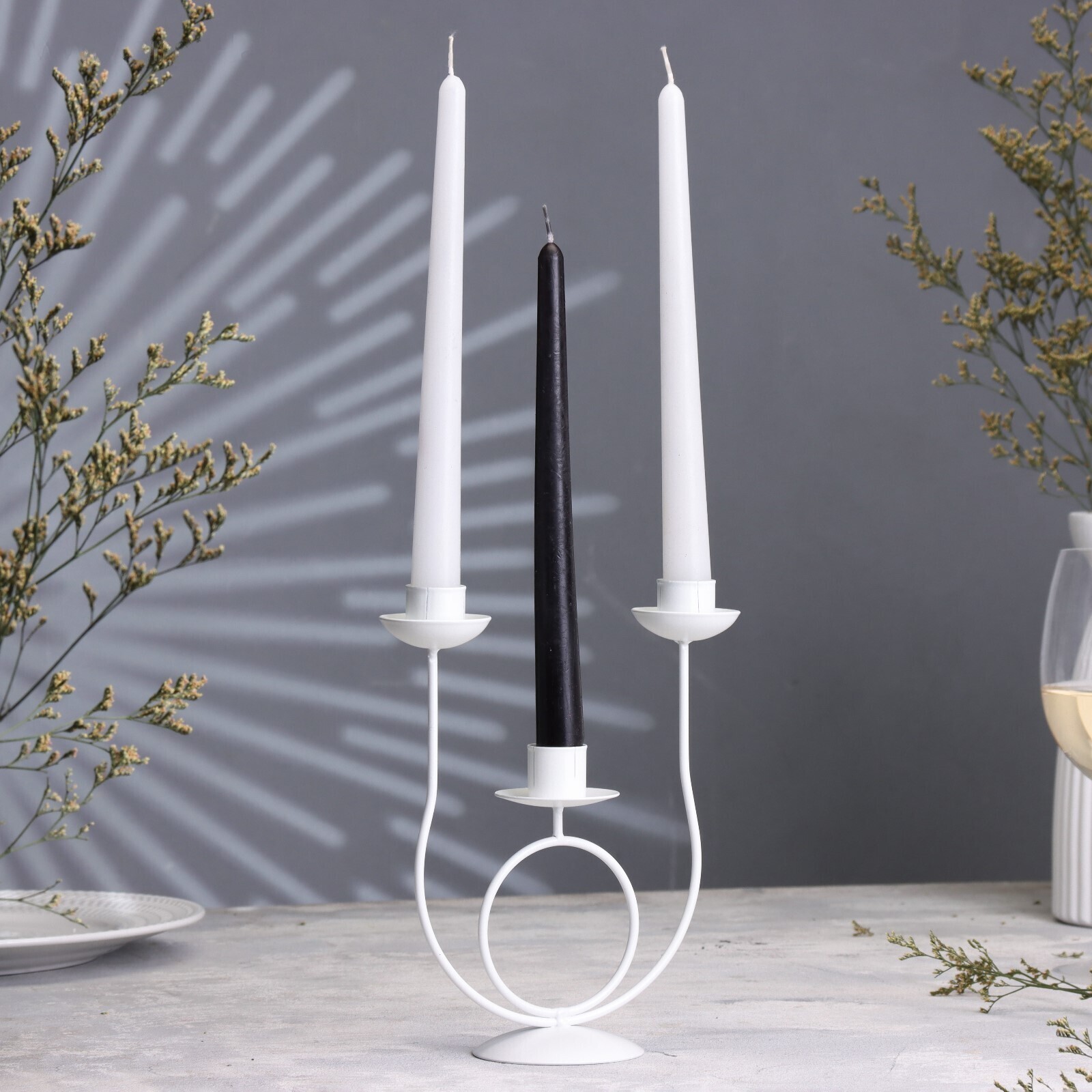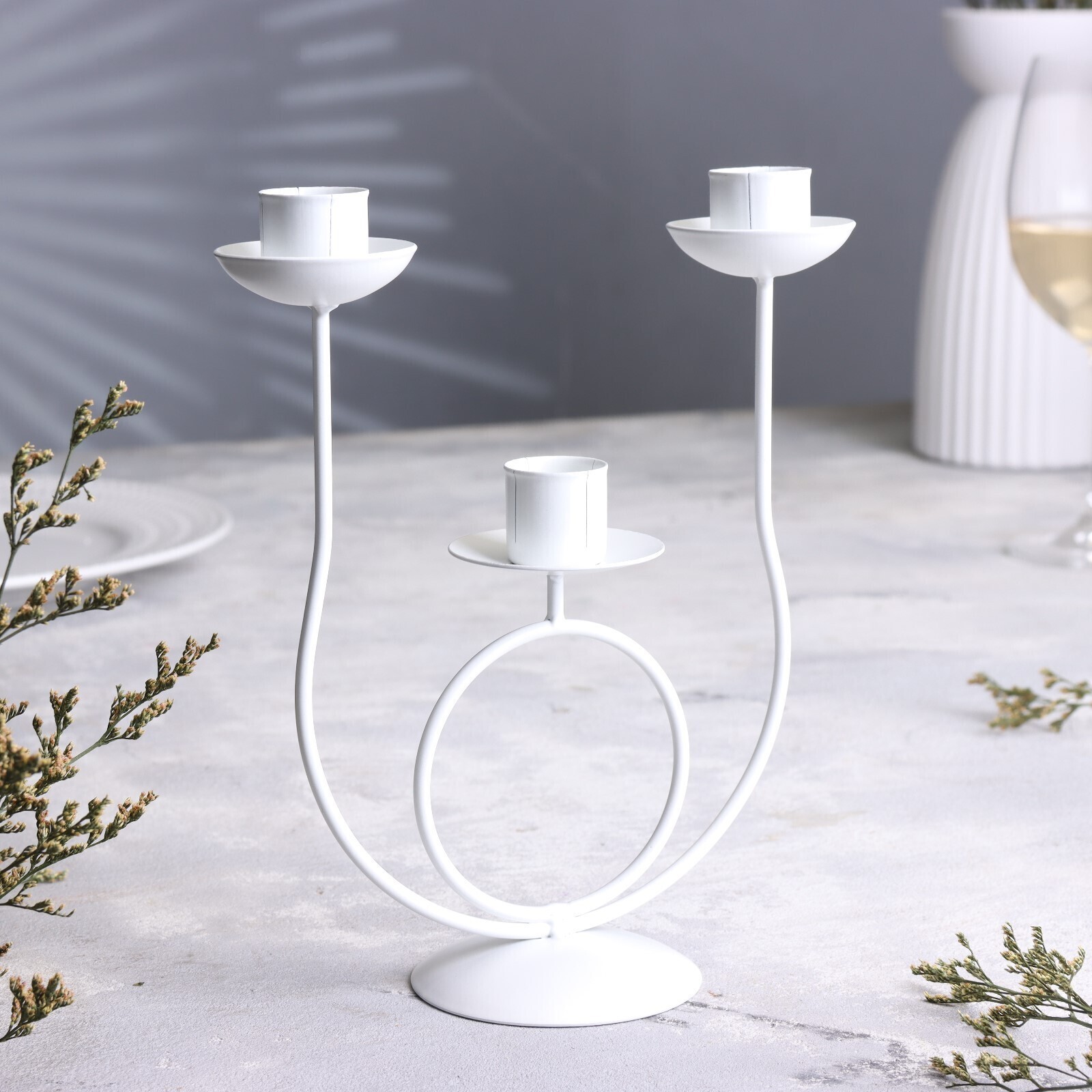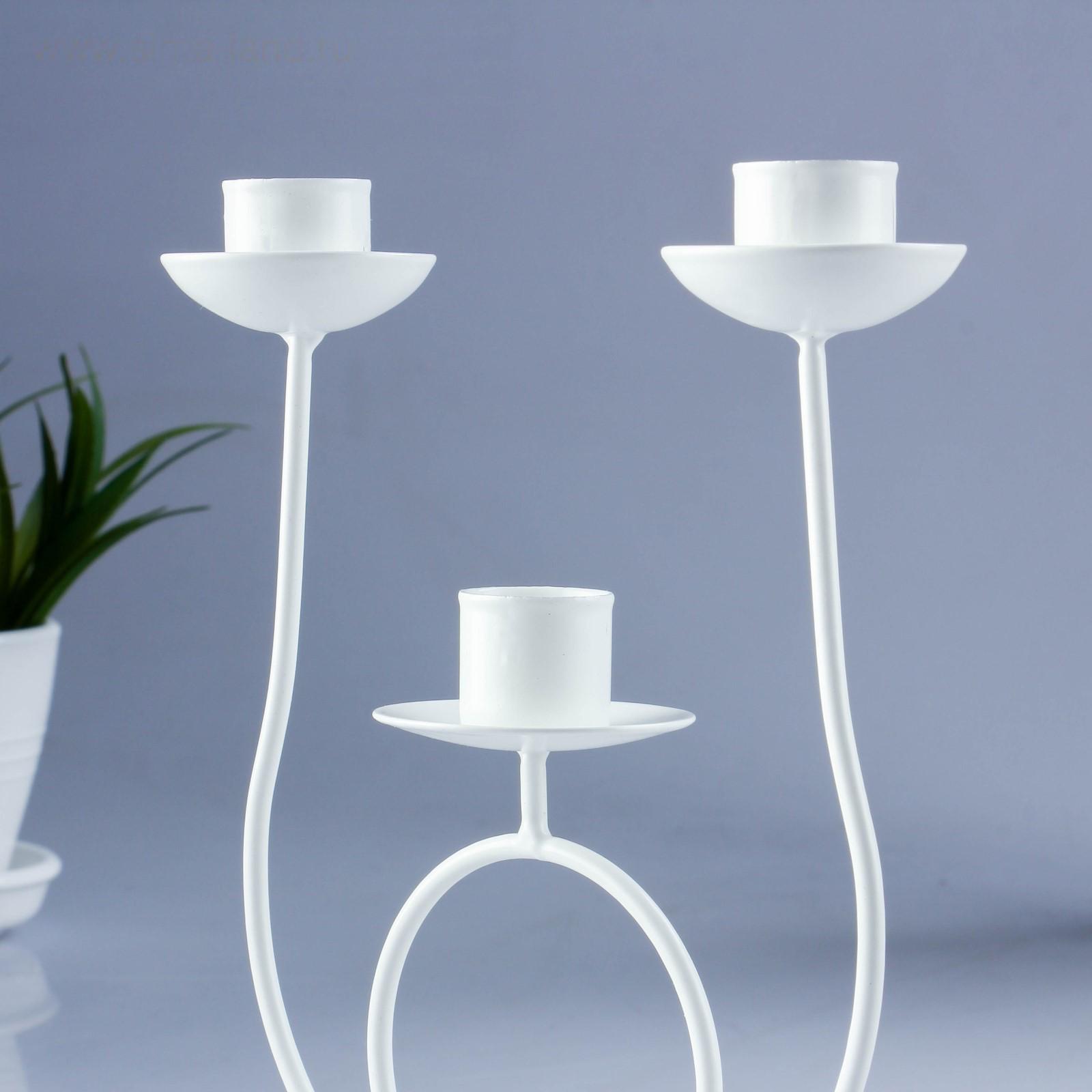 Подсвечник металл на 3 свечи "Трио", 18х17 см, белый