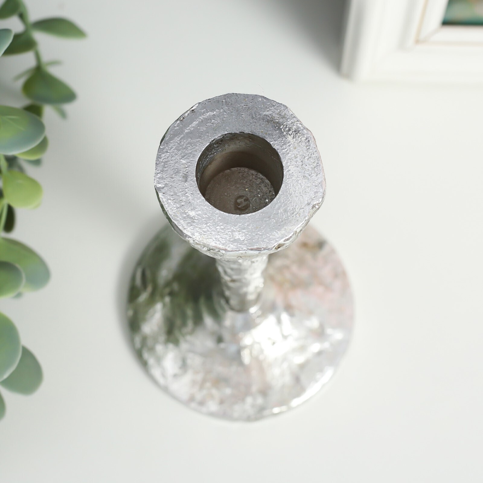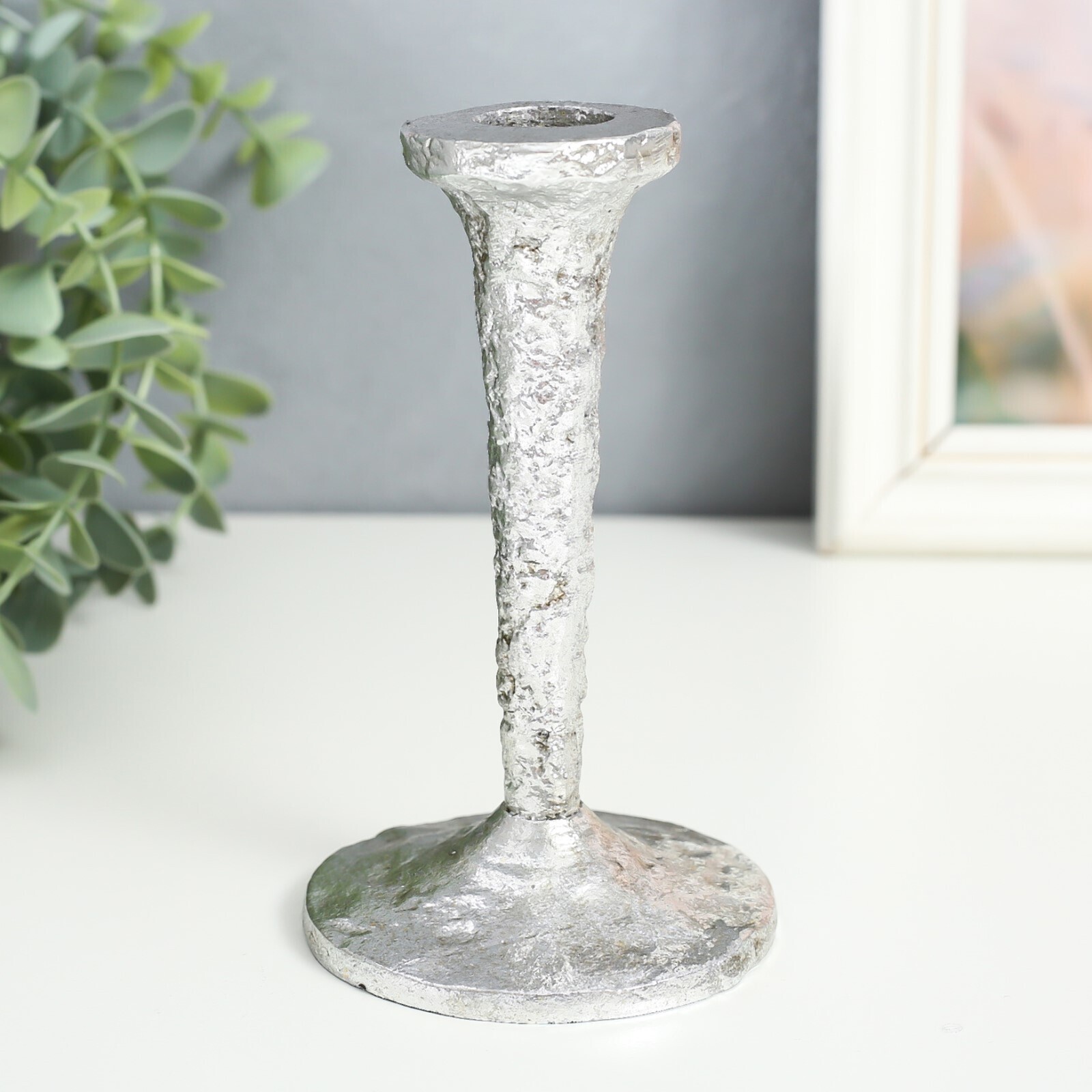Подсвечник полистоун на 1 свечу "Голиаф" серебро 14х8х8 см