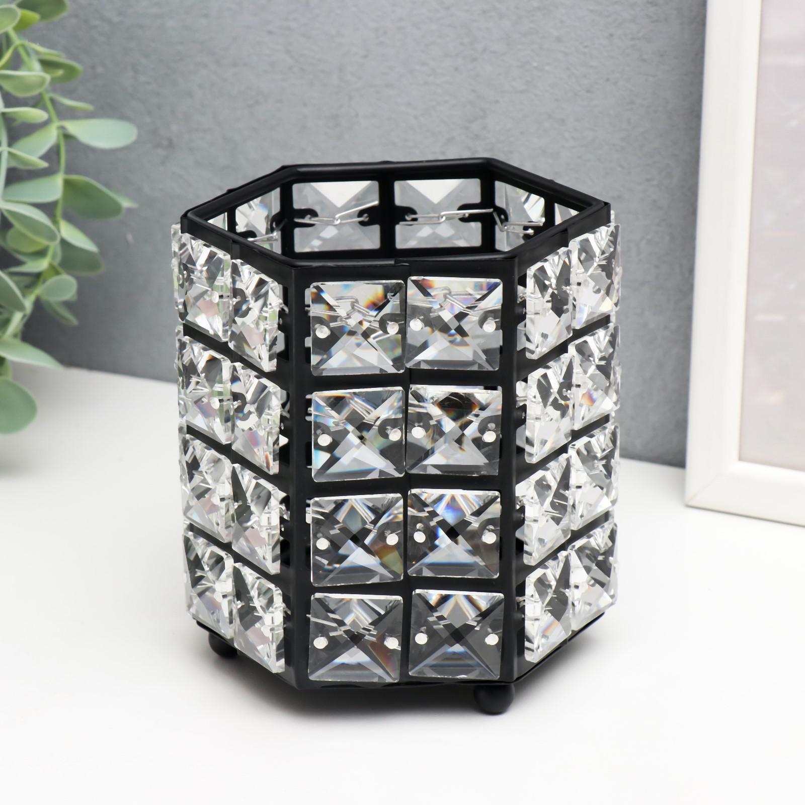 Подсвечник металл на 1 свечу "Кристаллы" многогранник чёрный 12х11х11 см