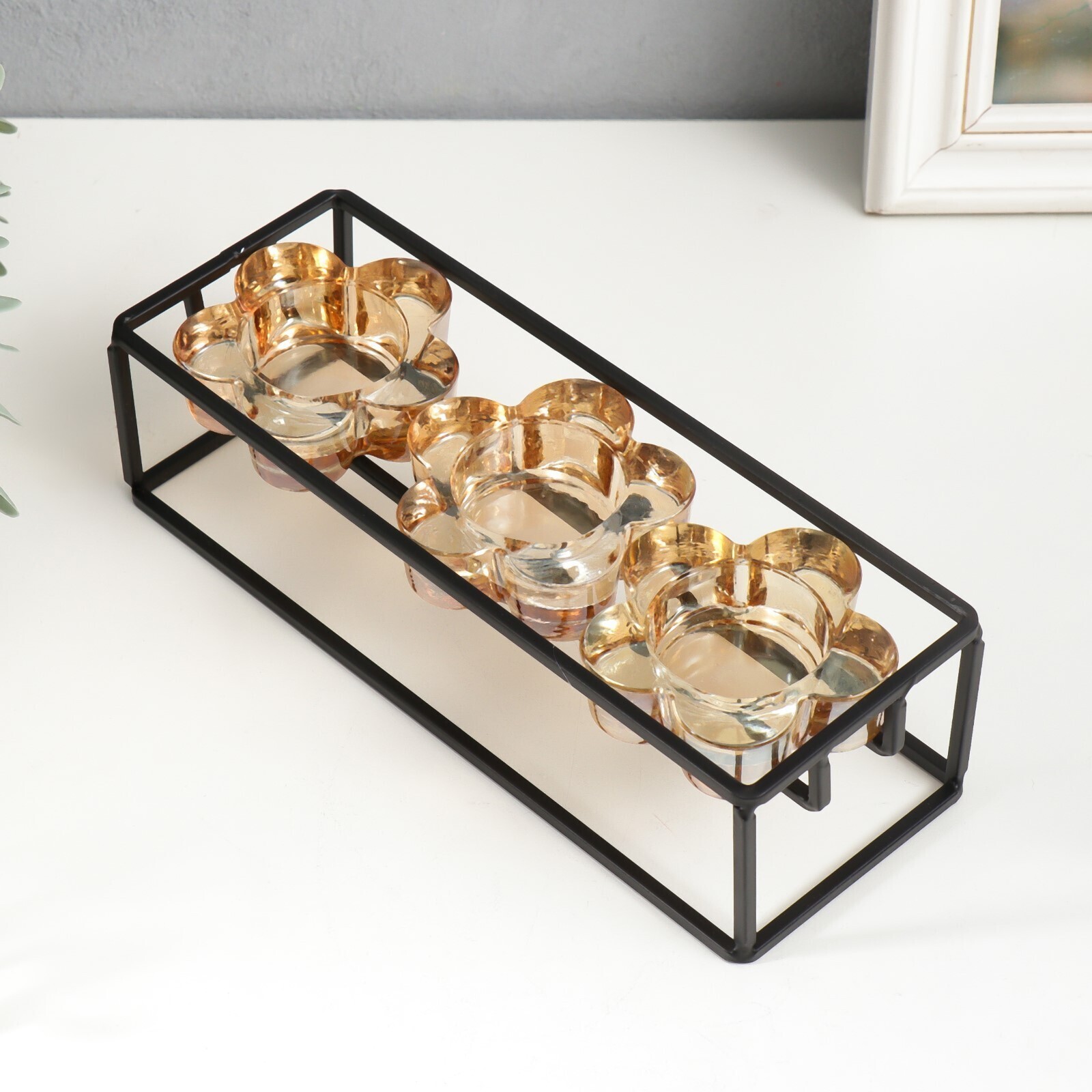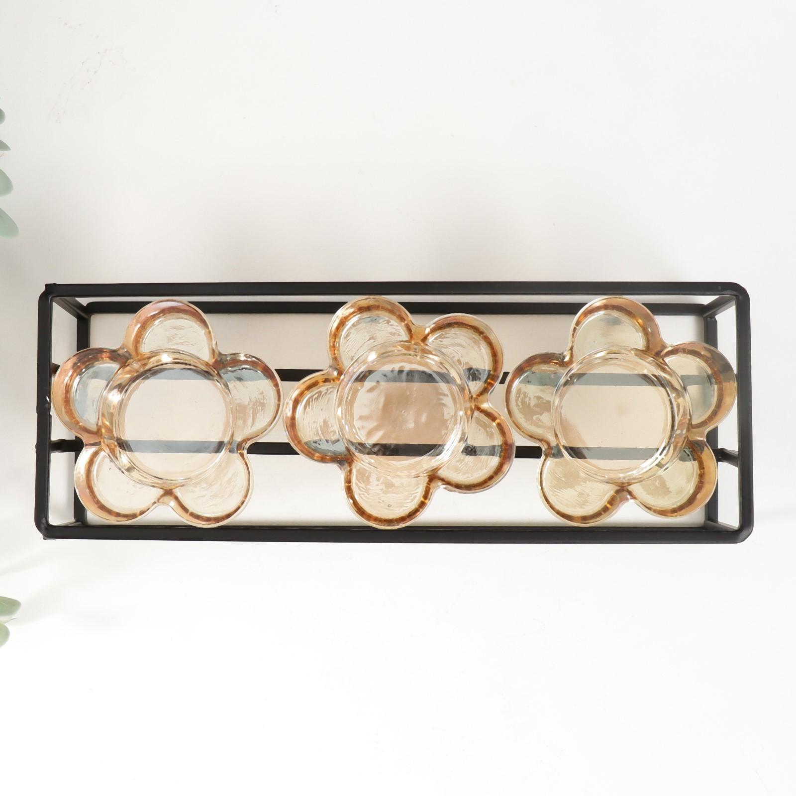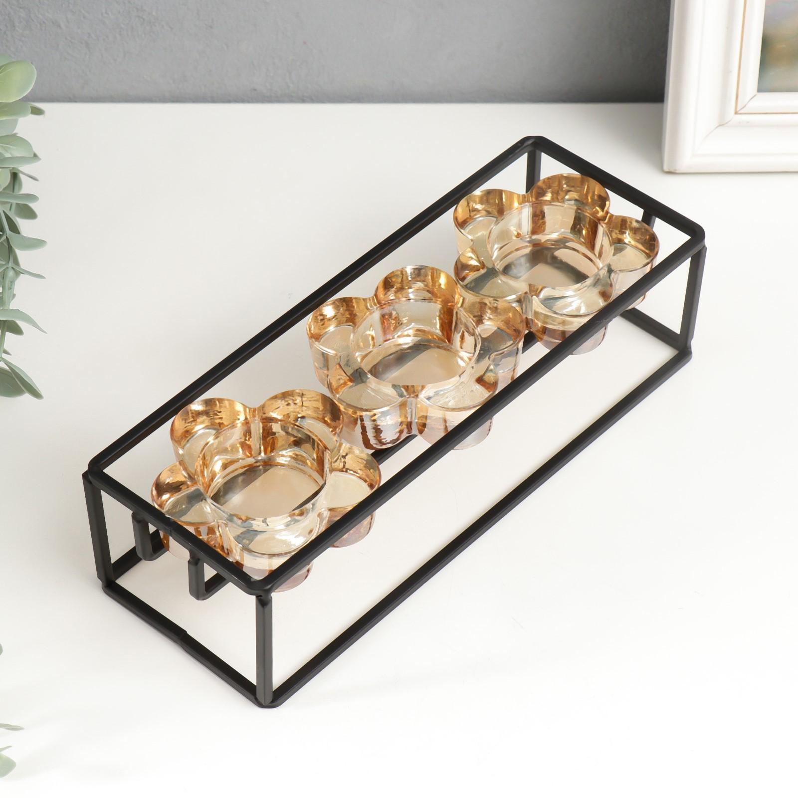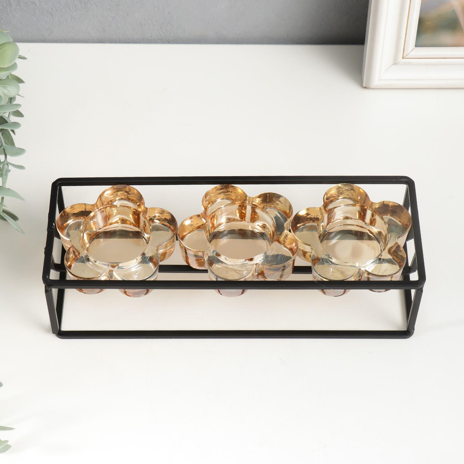 Подсвечник металл, стекло на 3 свечи "Стратегия" чёрный 6х22,8х8 см