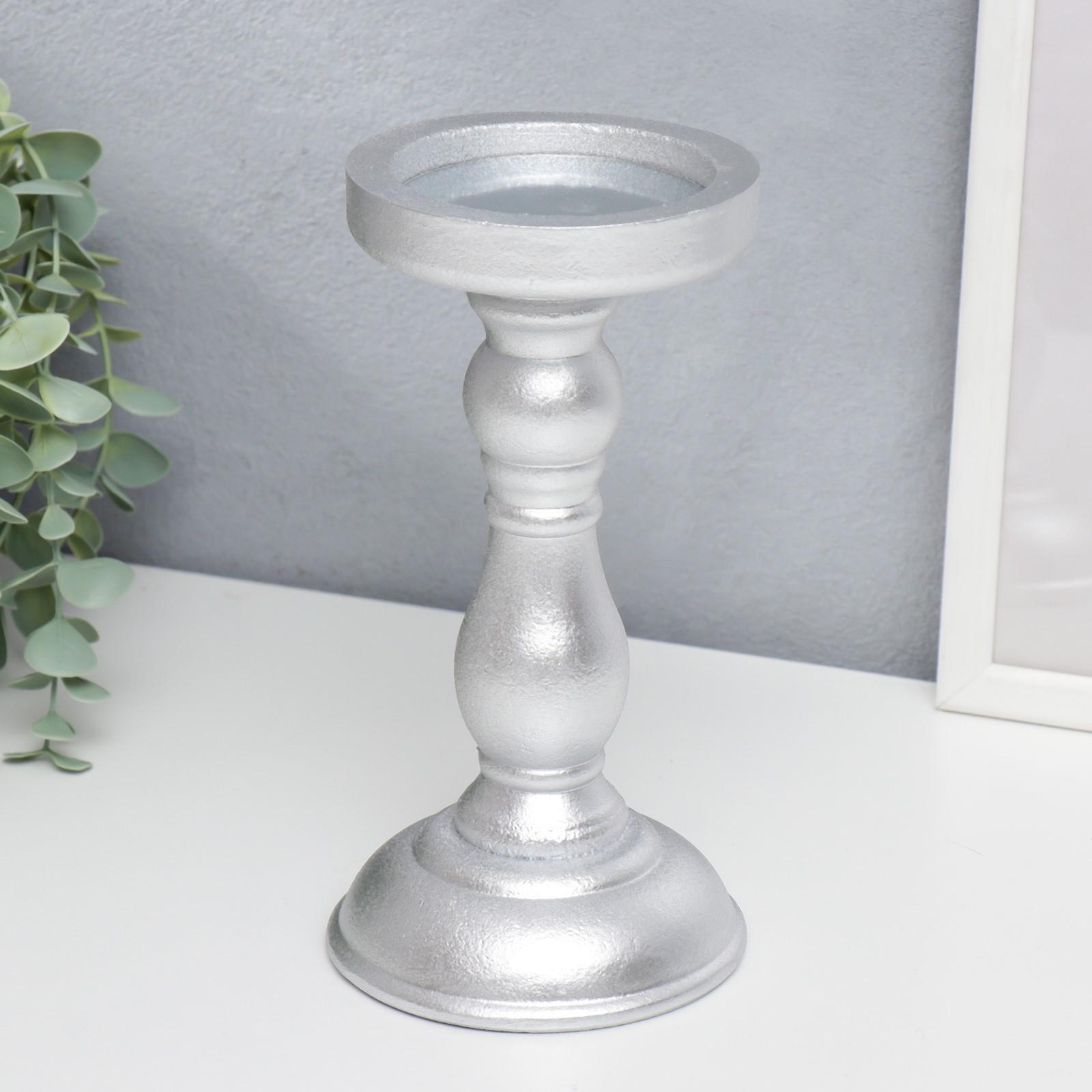 Подсвечник дерево на 1 свечу "Оскар" серебристый 19,5х10х10 см