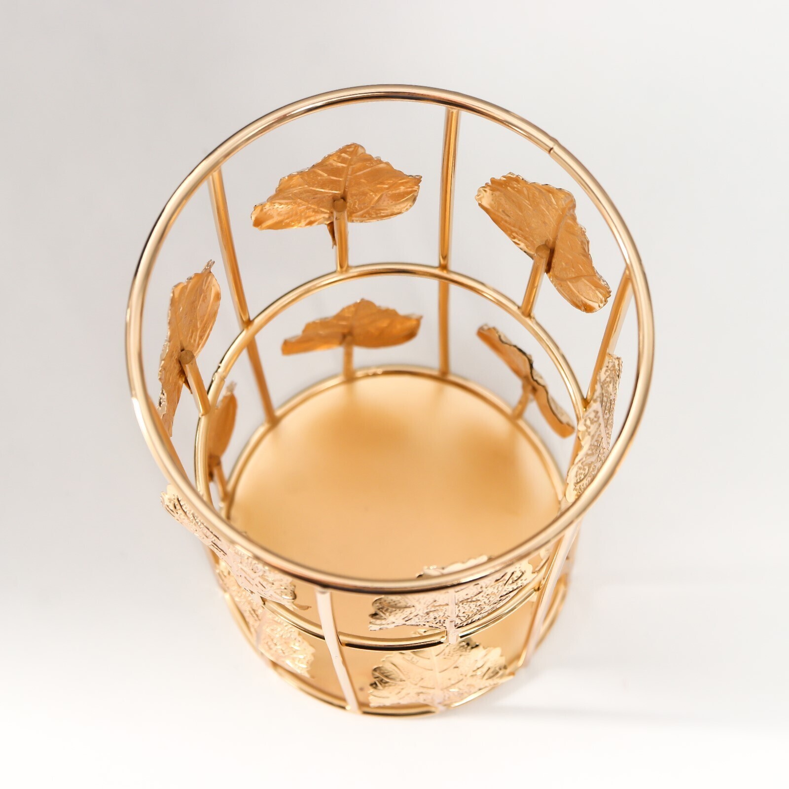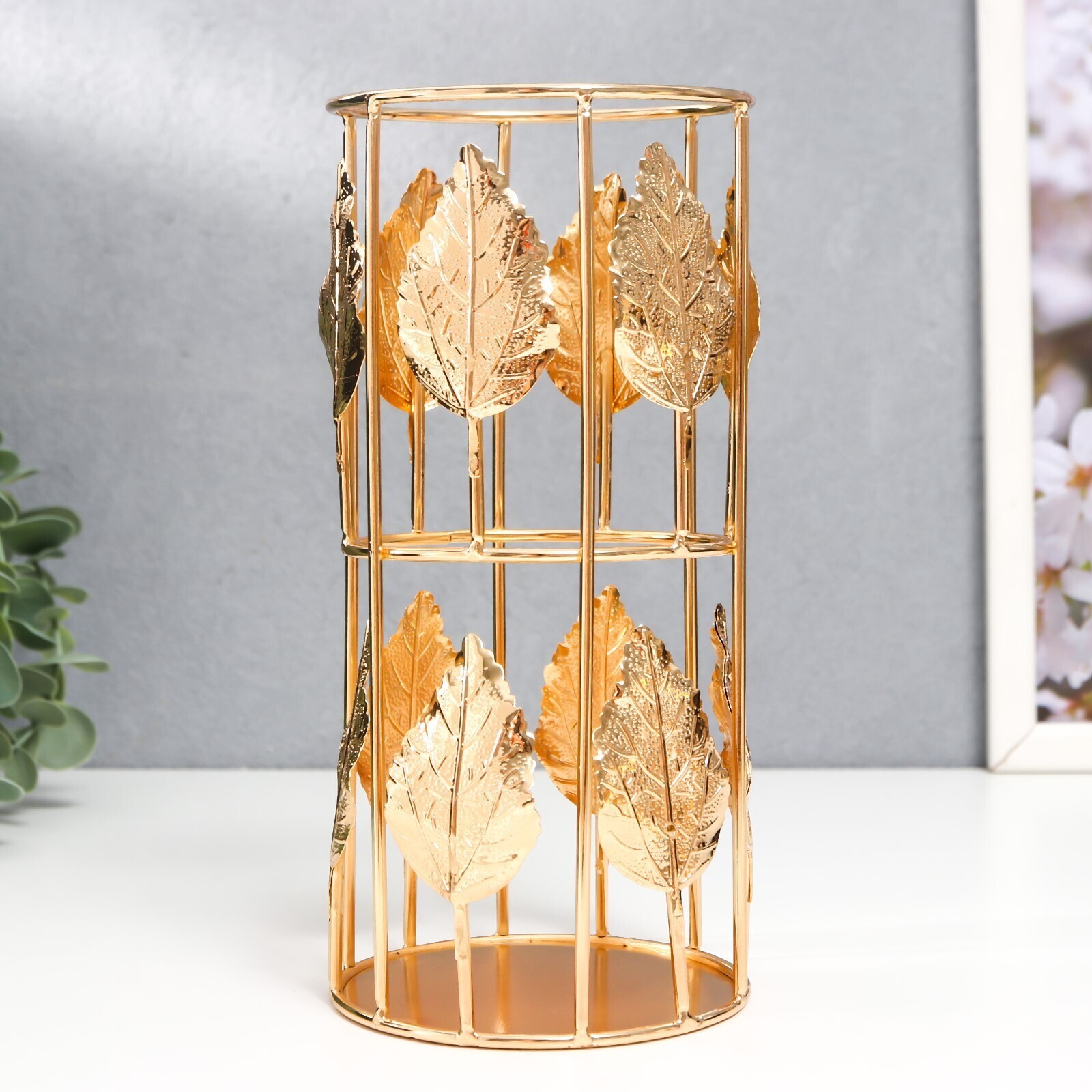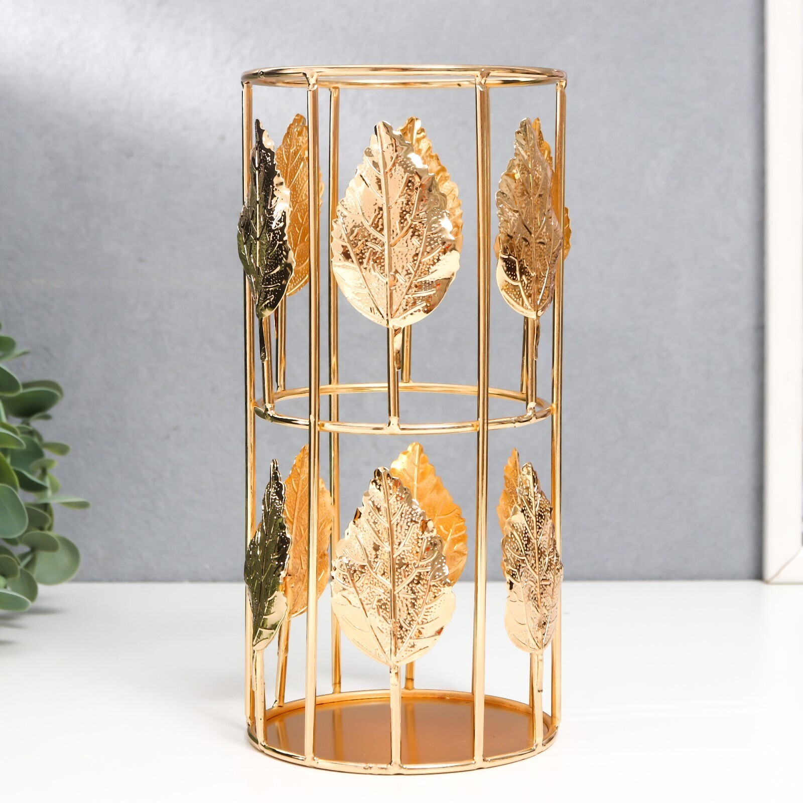 Подсвечник металл на 1 свечу "Золотые листья" цилиндр 19х9х9 см