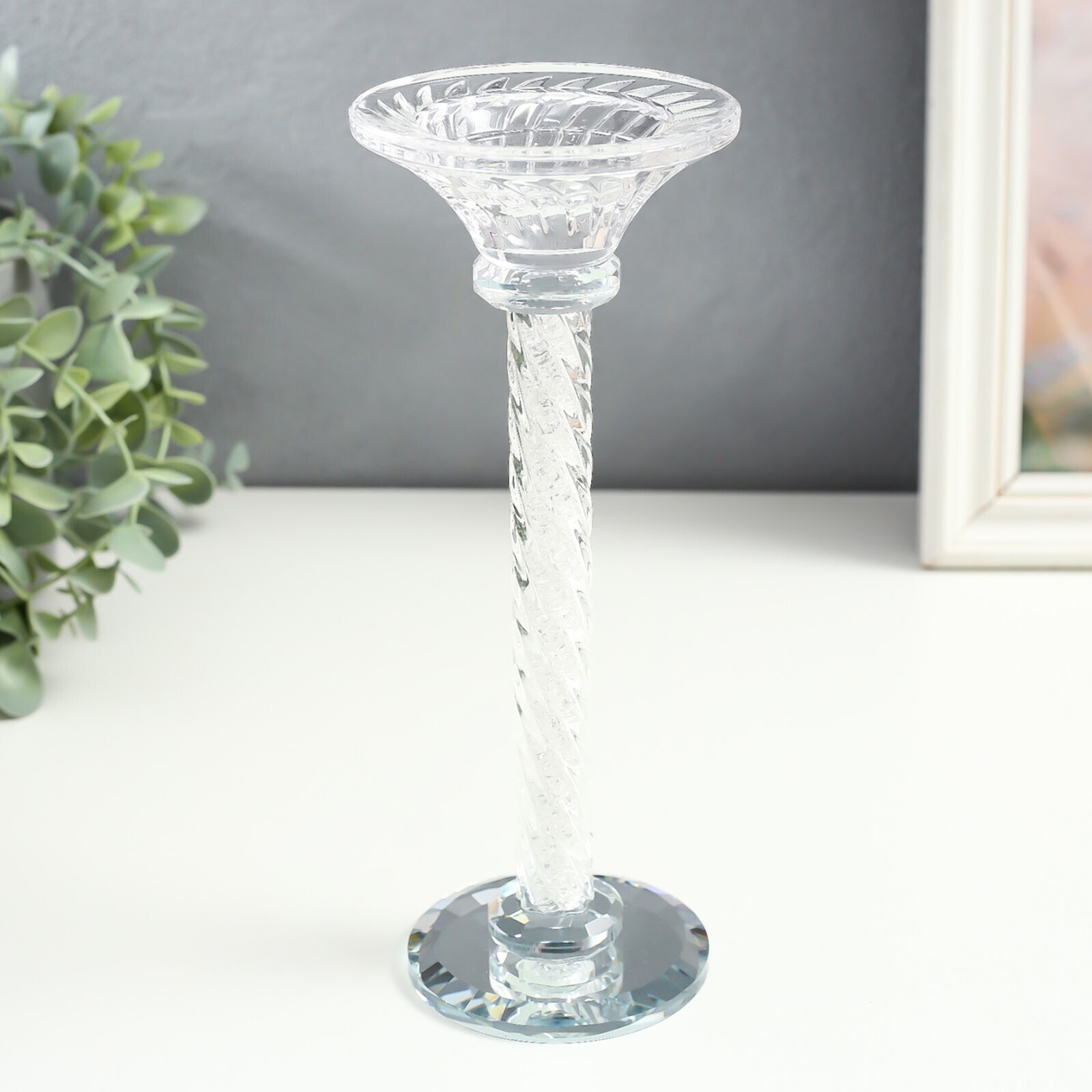 Подсвечник стекло на 1 свечу "Спираль" бисер в ножке 9х9х22 см