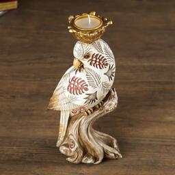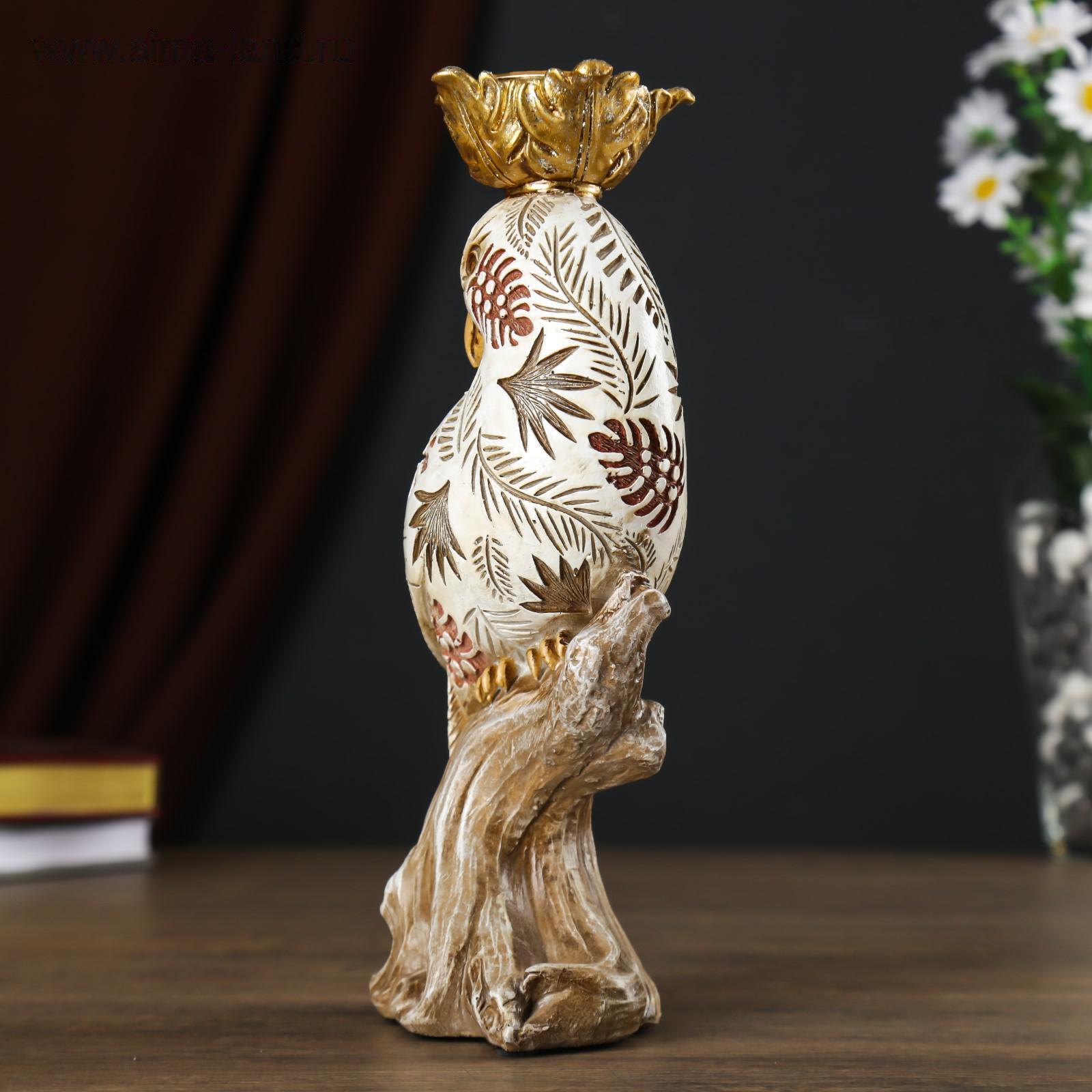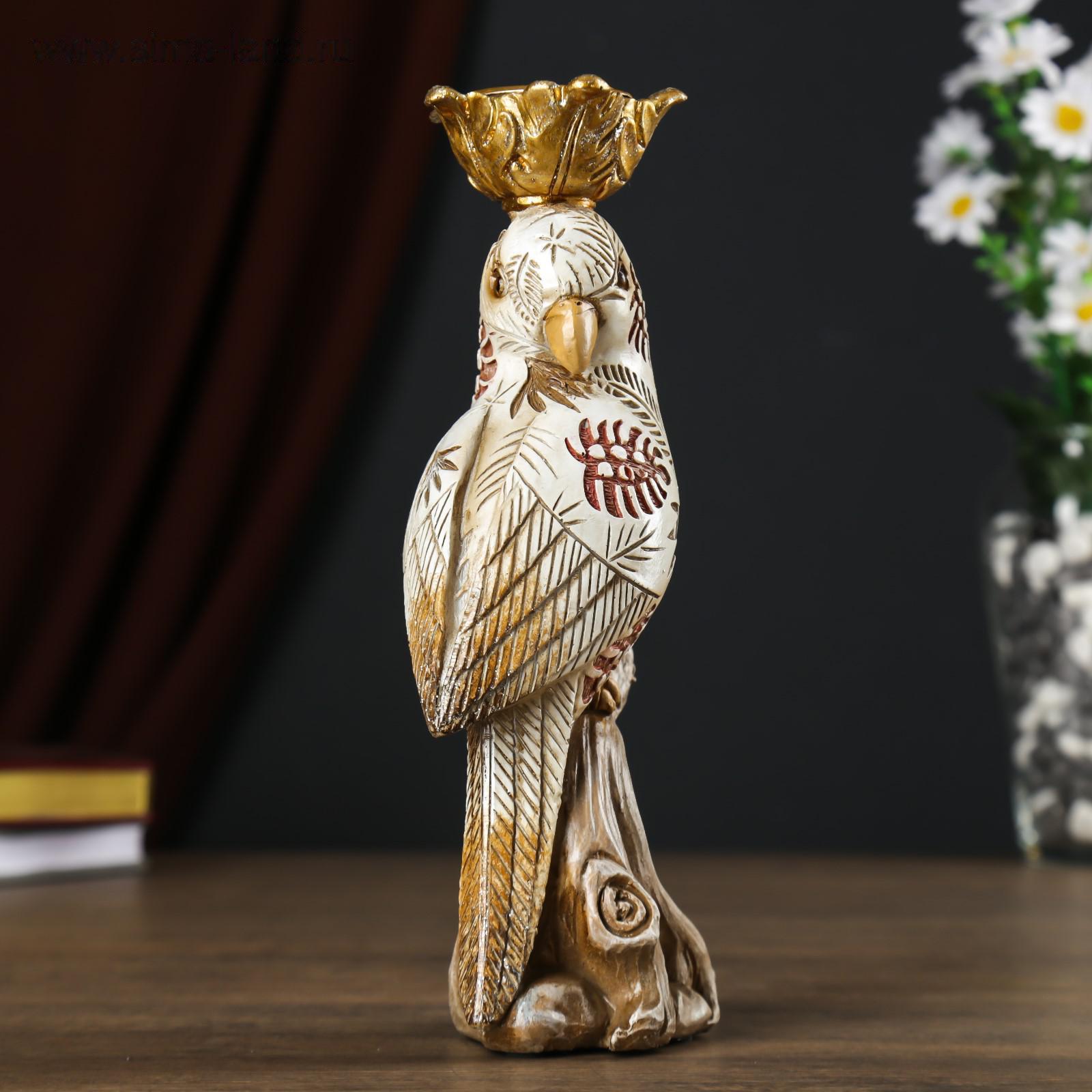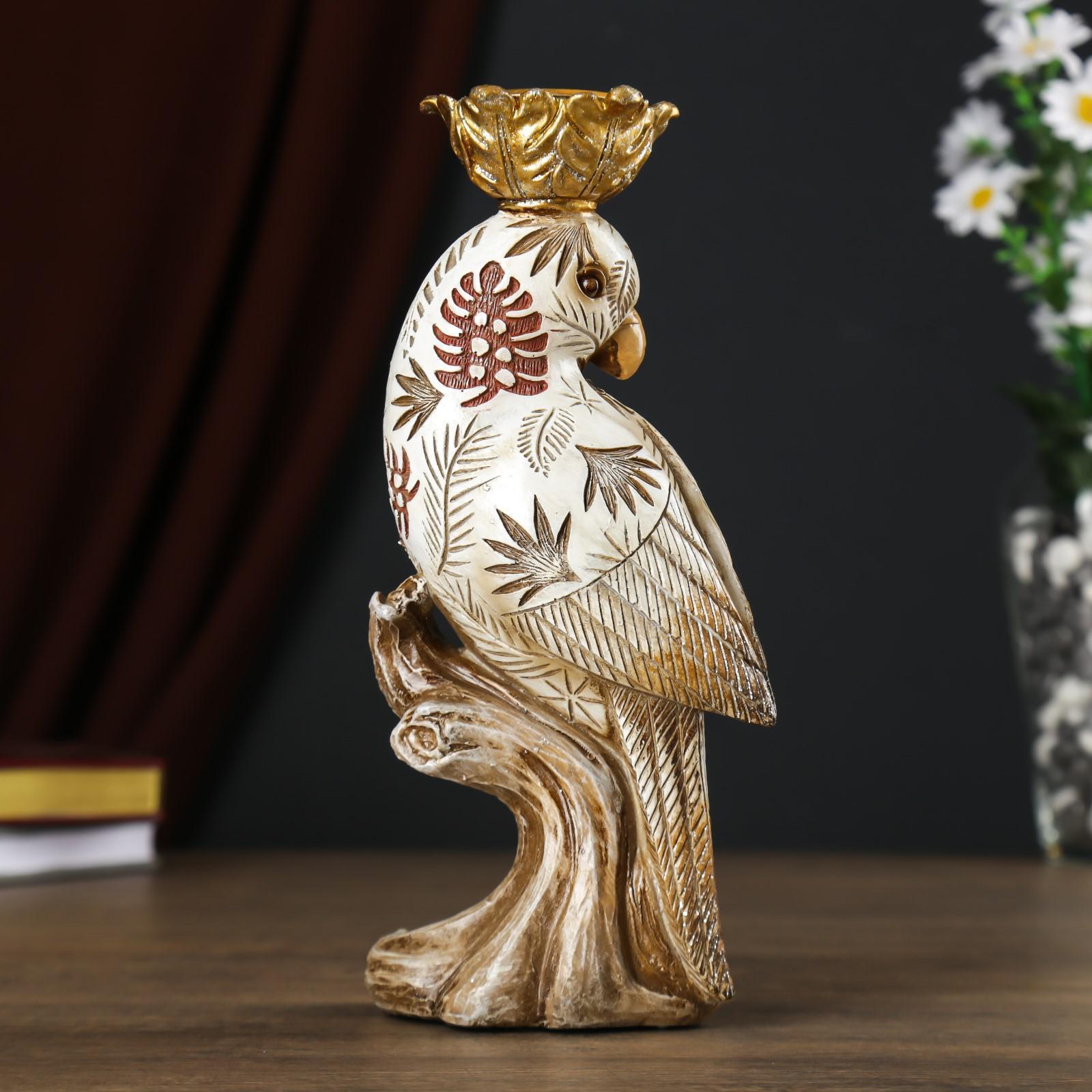 Сувенир полистоун подсвечник со свечой "Попугай с листьями на перьях" 24,5х7,5х12 см
