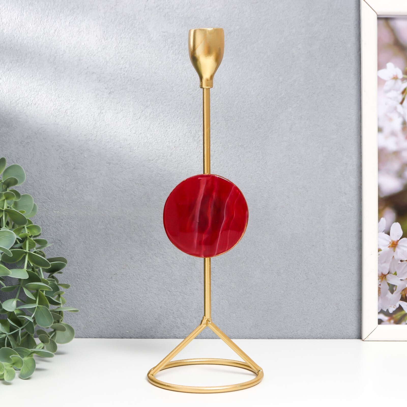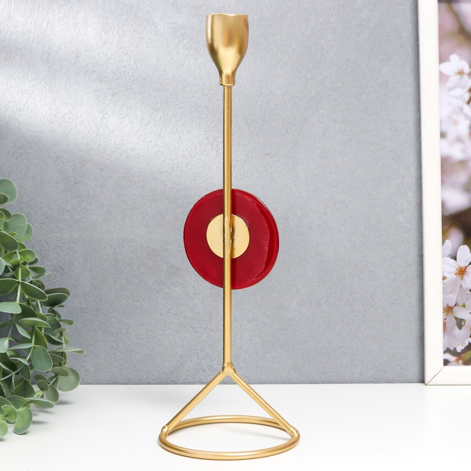 Подсвечник металл на 1 свечу "Мраморный круг. Розовый закат" золото 29х9,5х9,5 см
