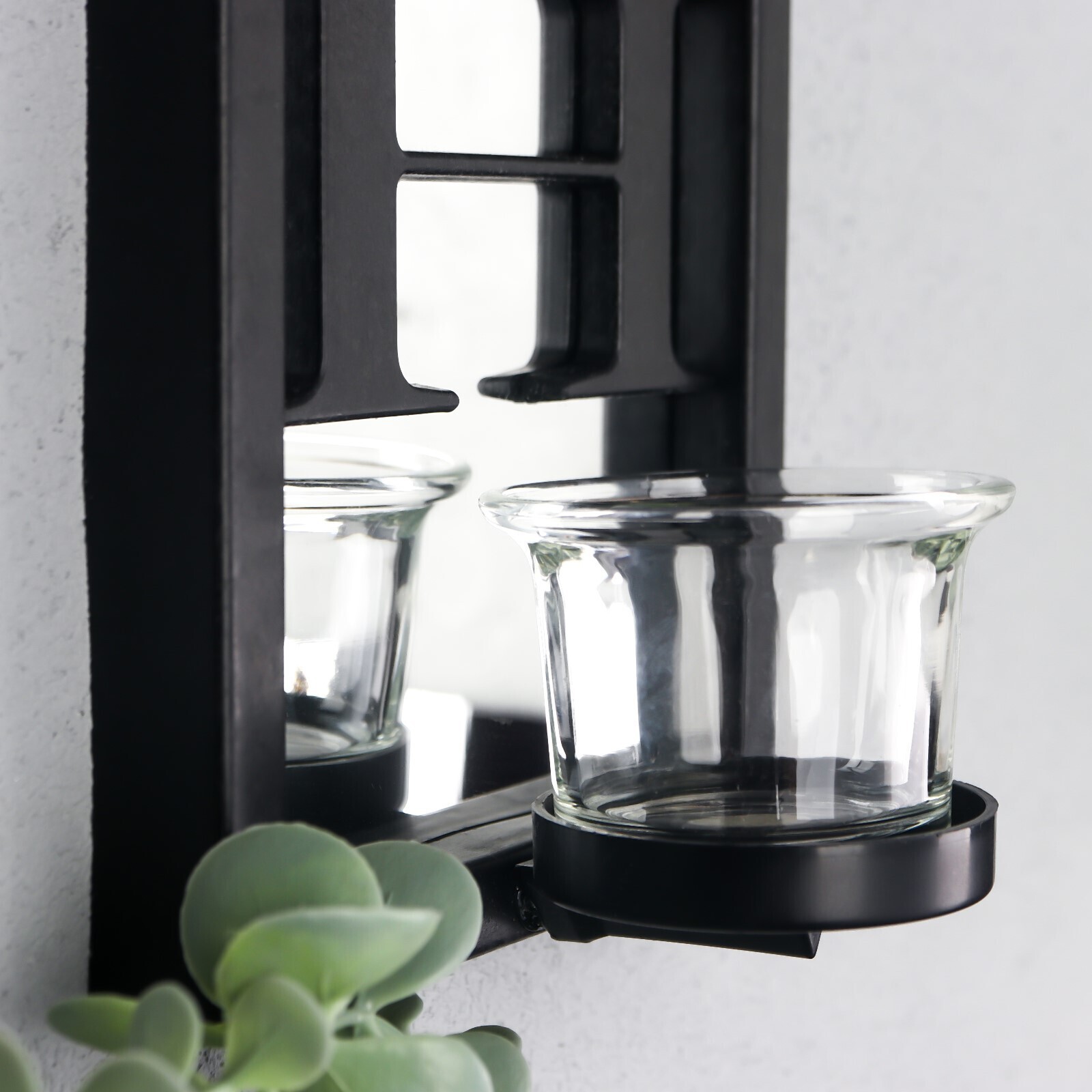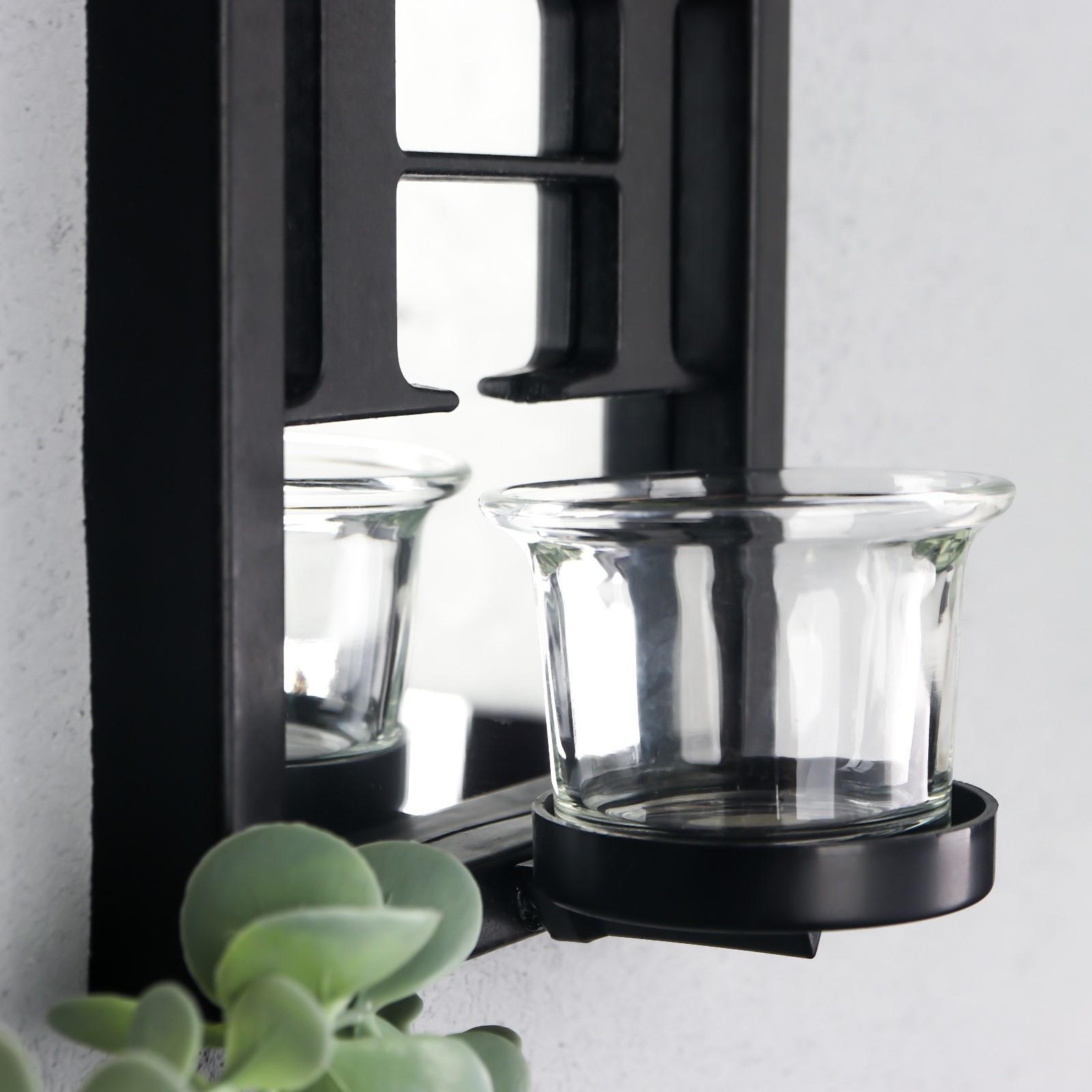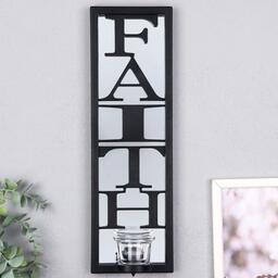 Подсвечник пластик, стекло на 1 свечу "Отражение веры" d-4 см чёрная 8х12х41 см