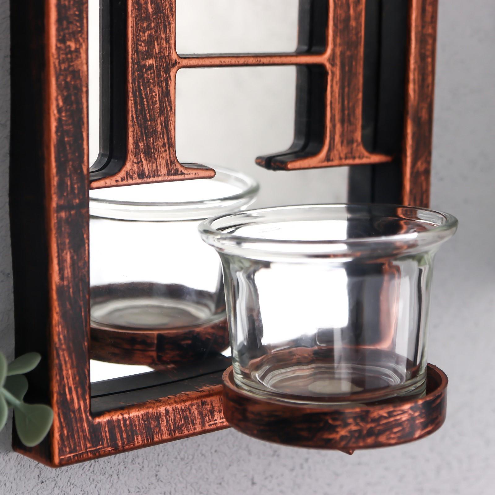 Подсвечник пластик, стекло на 1 свечу "Отражение веры" d-4 см стар. бронза 8х12х41 см