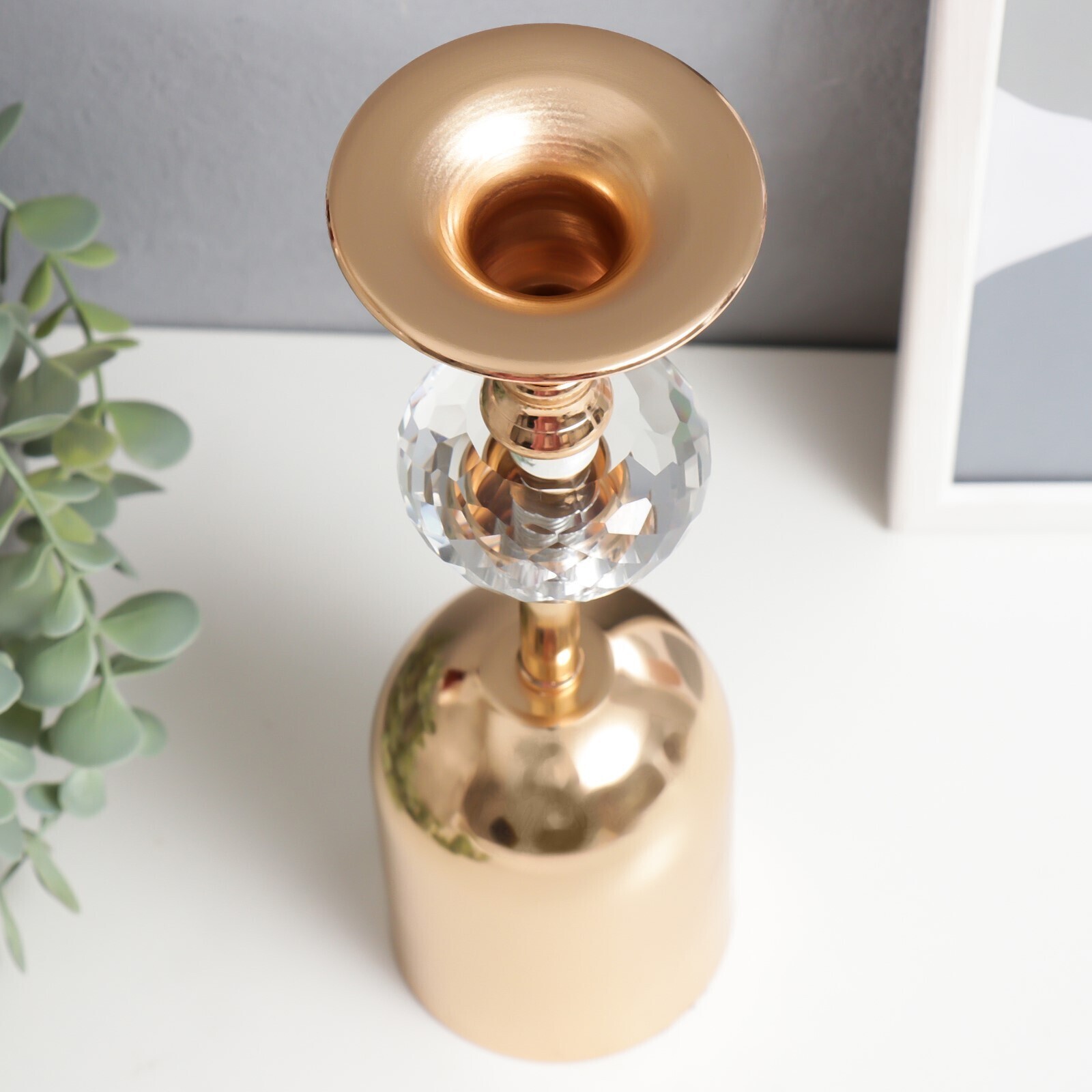 Подсвечник металл, акрил на 1 свечу "Перевёрнутый бокал с кристаллом" золото 29х7,5х7,5 см