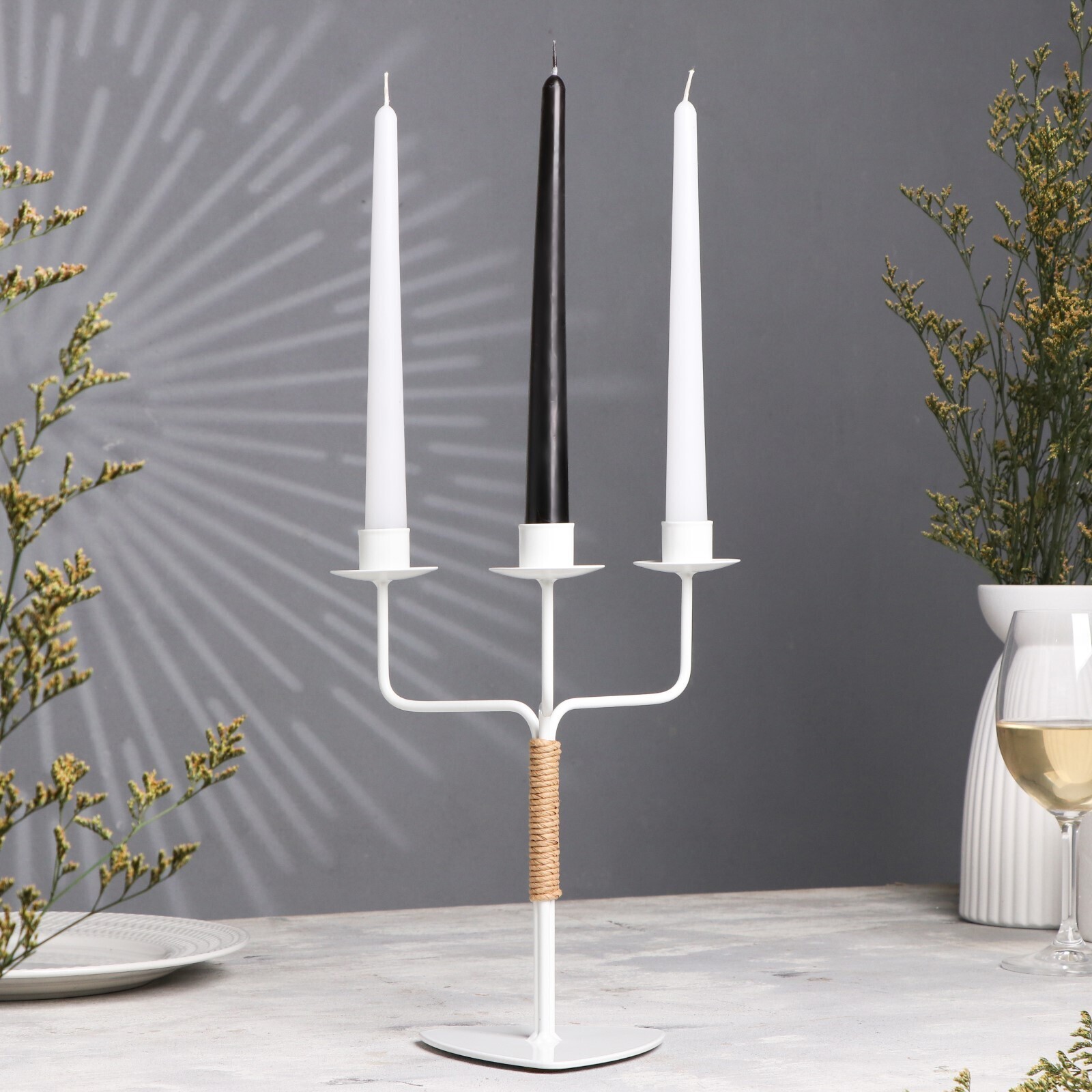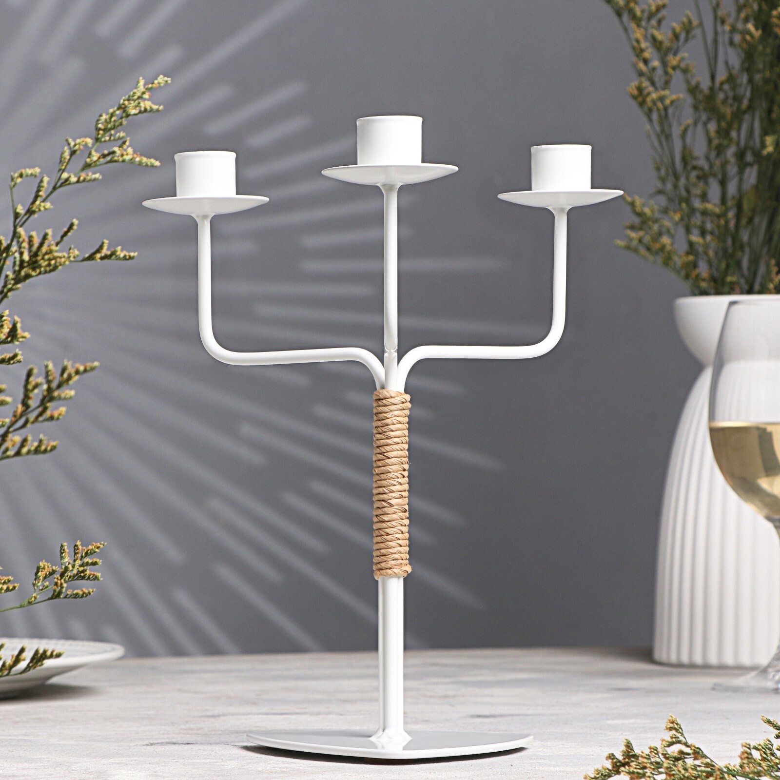 Подсвечник металл на 3 свечи "Шандал", 26,2х20,5 см, белый