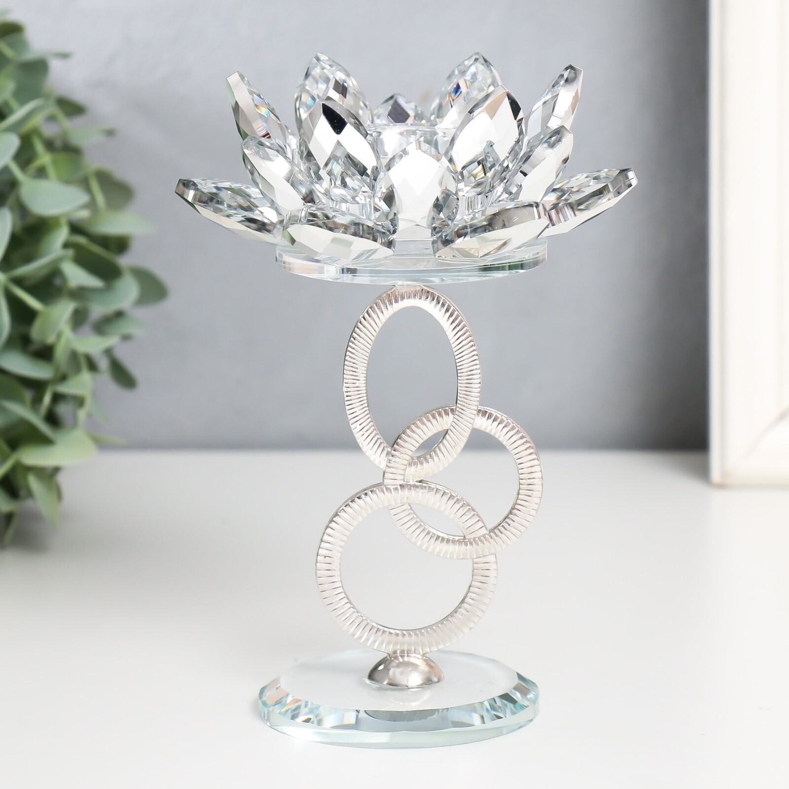 Подсвечник стекло, металл на 1 свечу "Лотос на кольцах" d-4 см 11,2х9х16,5 см
