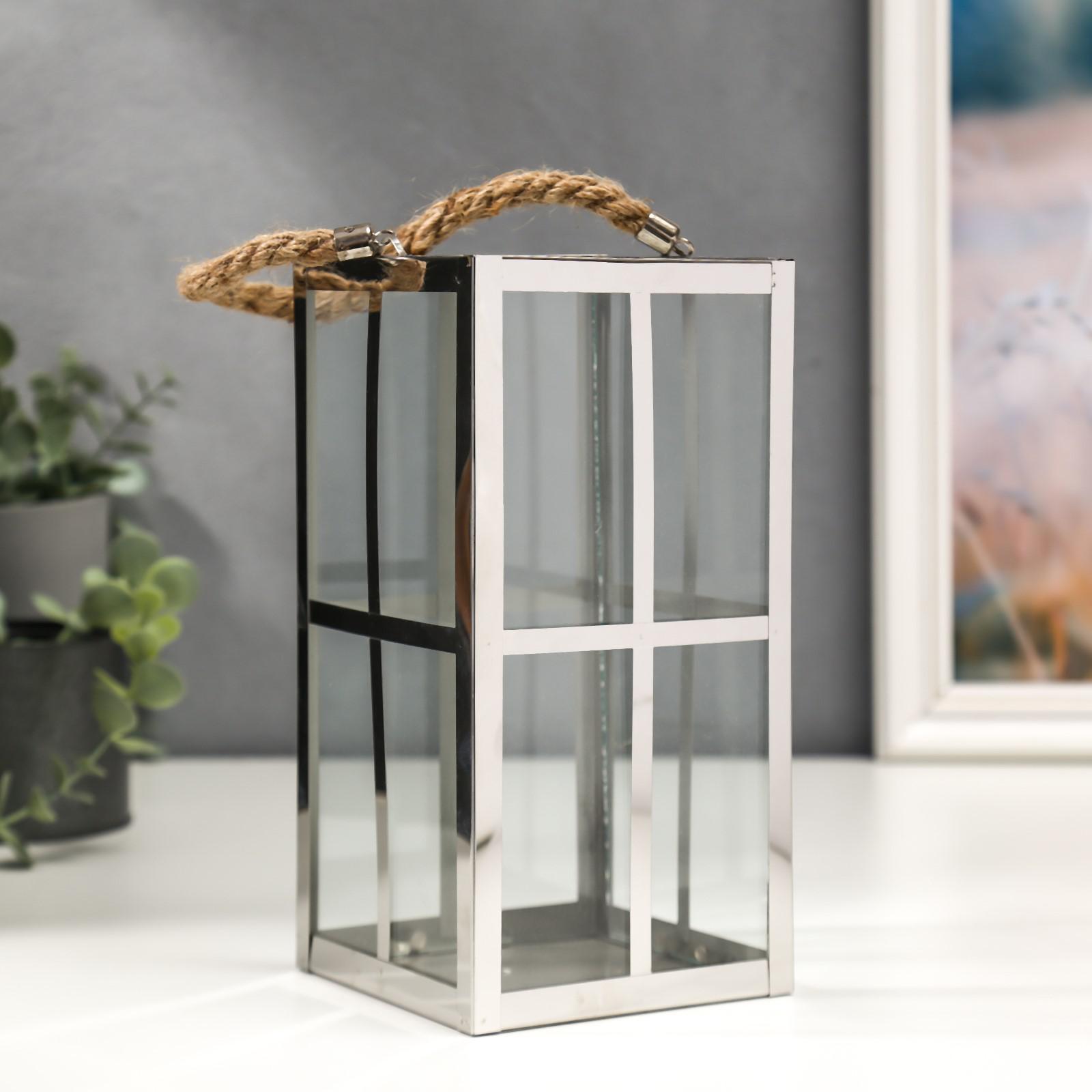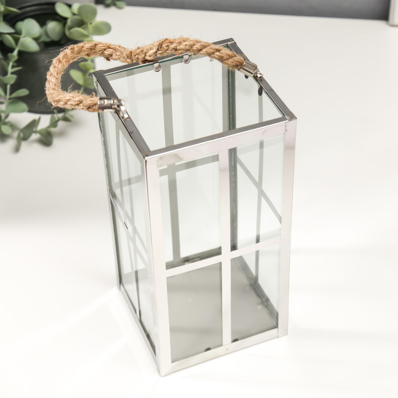 Подсвечник металл, стекло на 1 свечу фонарик "Окна" серебро 22х11х11 см