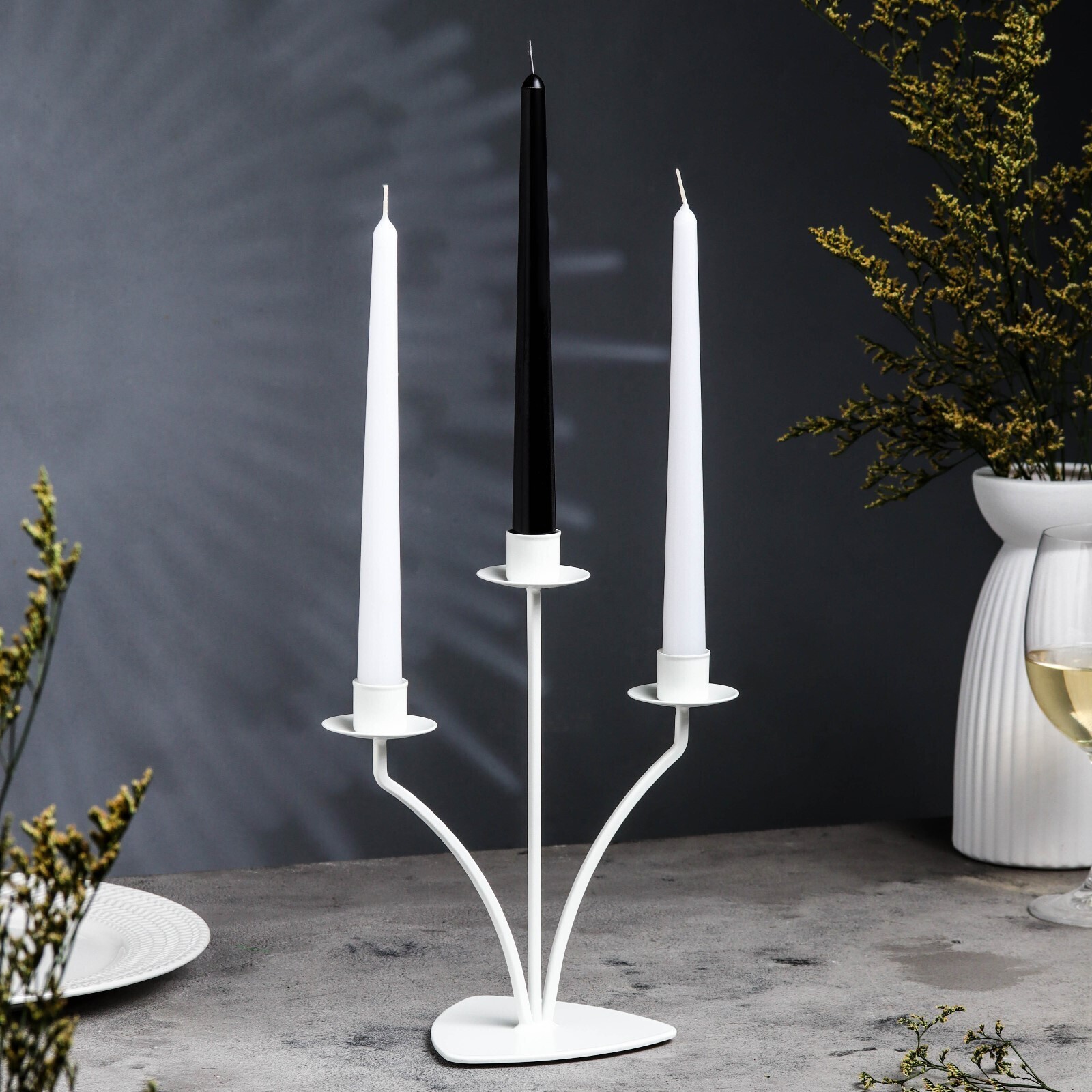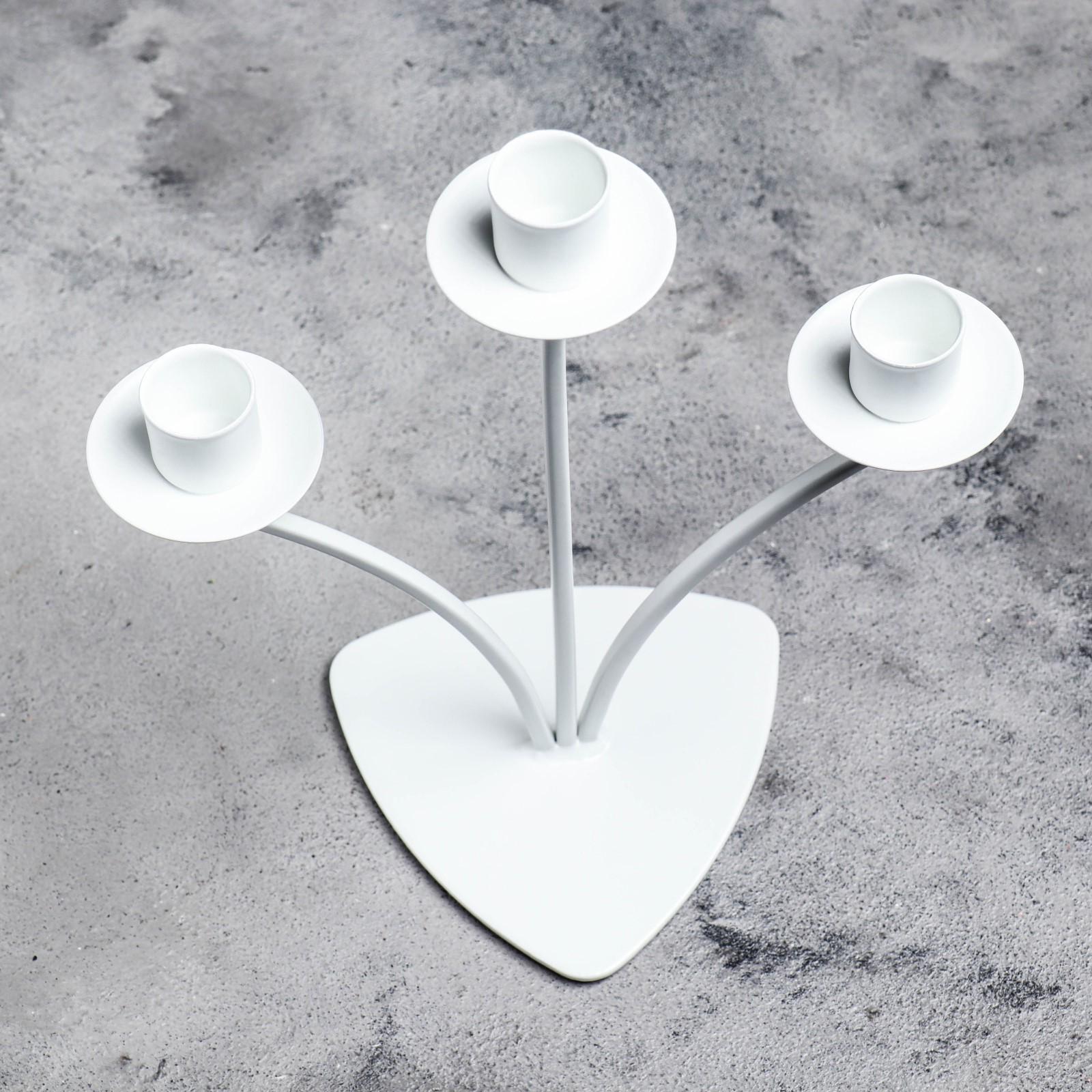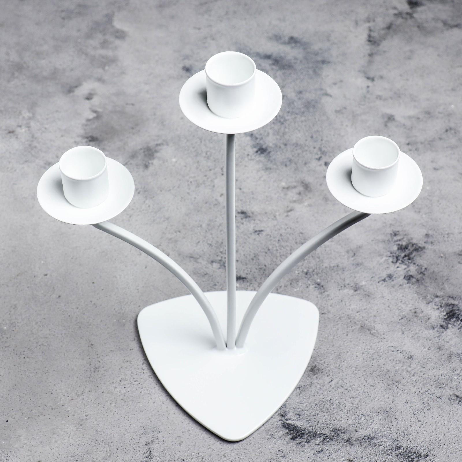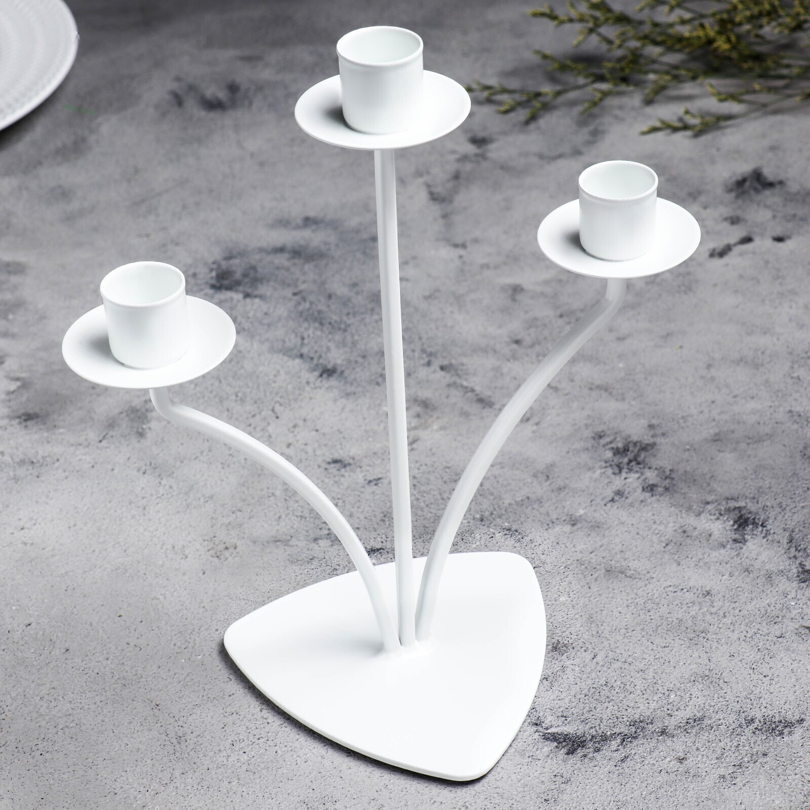 Подсвечник металл на 3 свечи "Диез", 10,5х27 см, белый