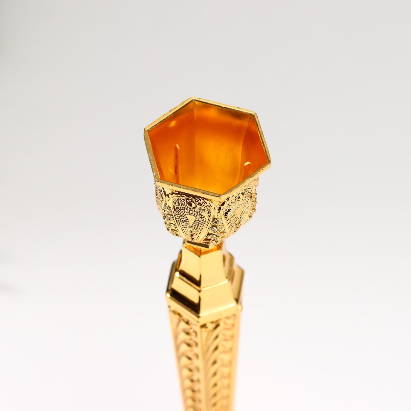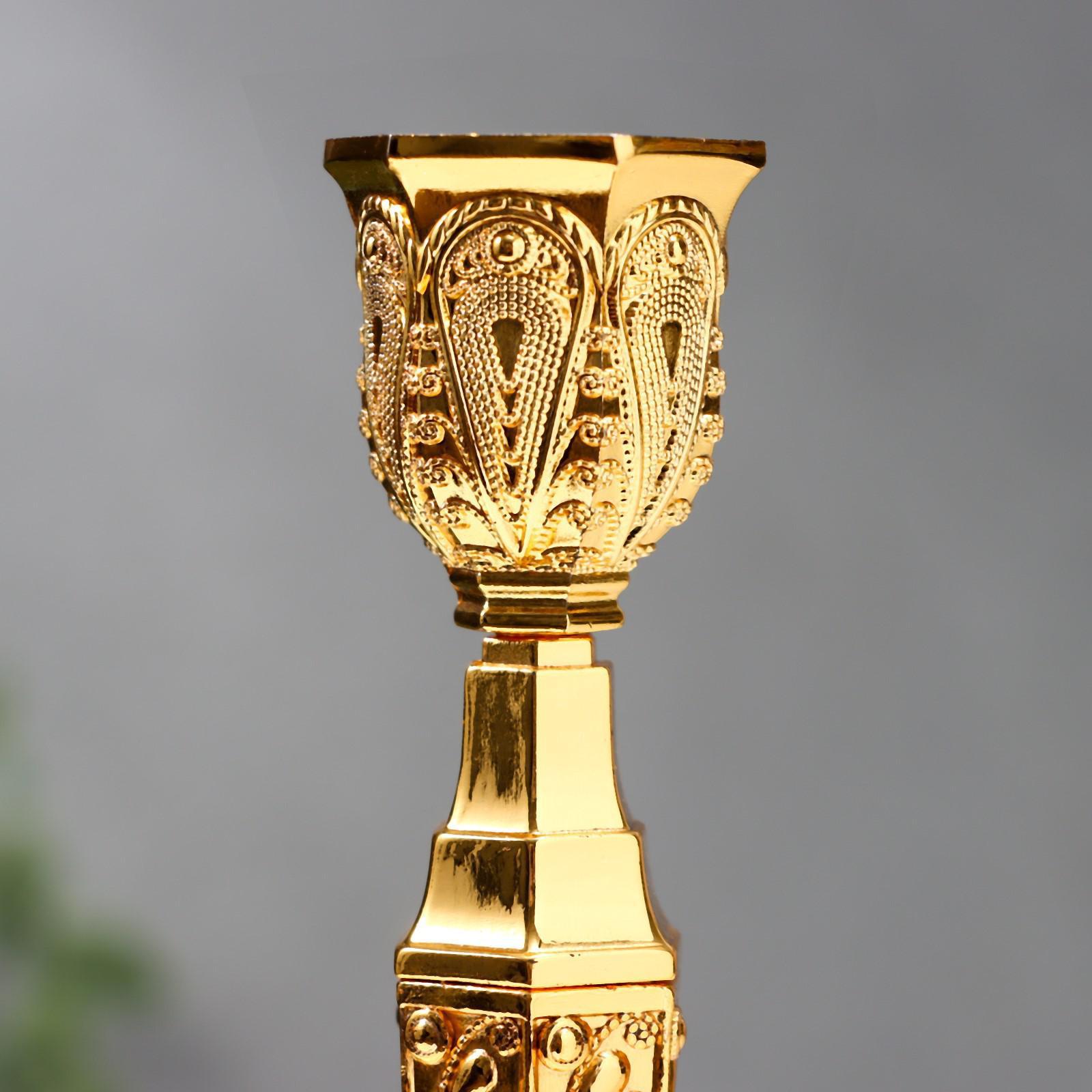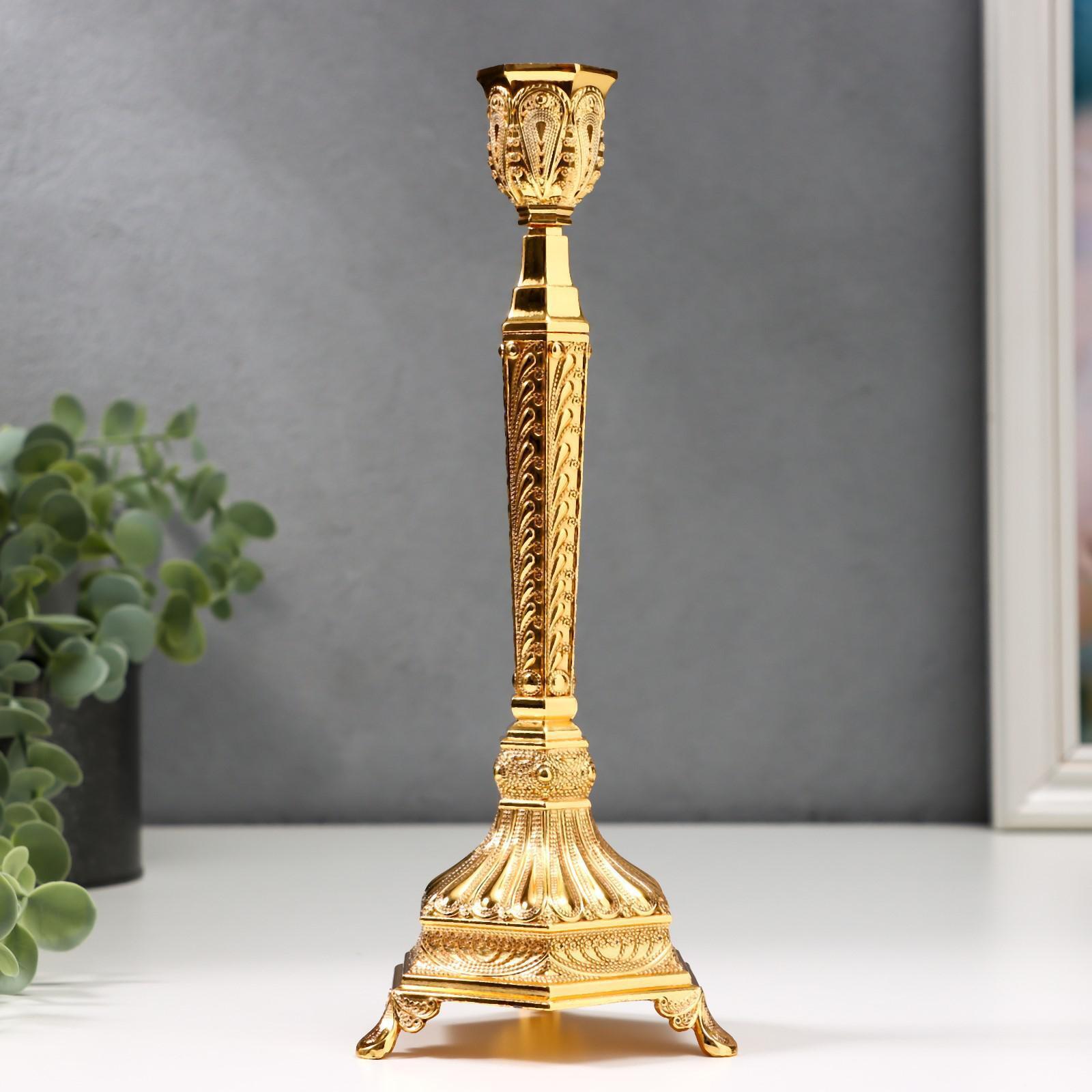 Подсвечник металл на 1 свечу "Узорный" золото 25х10х10 см